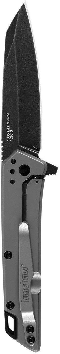 Kershaw Misdirect Pocketknife; 2.9 in. 4Cr13 Black-Oxide Blackwash Finish Blade, Stainless Steel Stonewash Finish Handle Equipped with SpeedSafe Assisted Opening, Flipper and Frame Lock (1365)