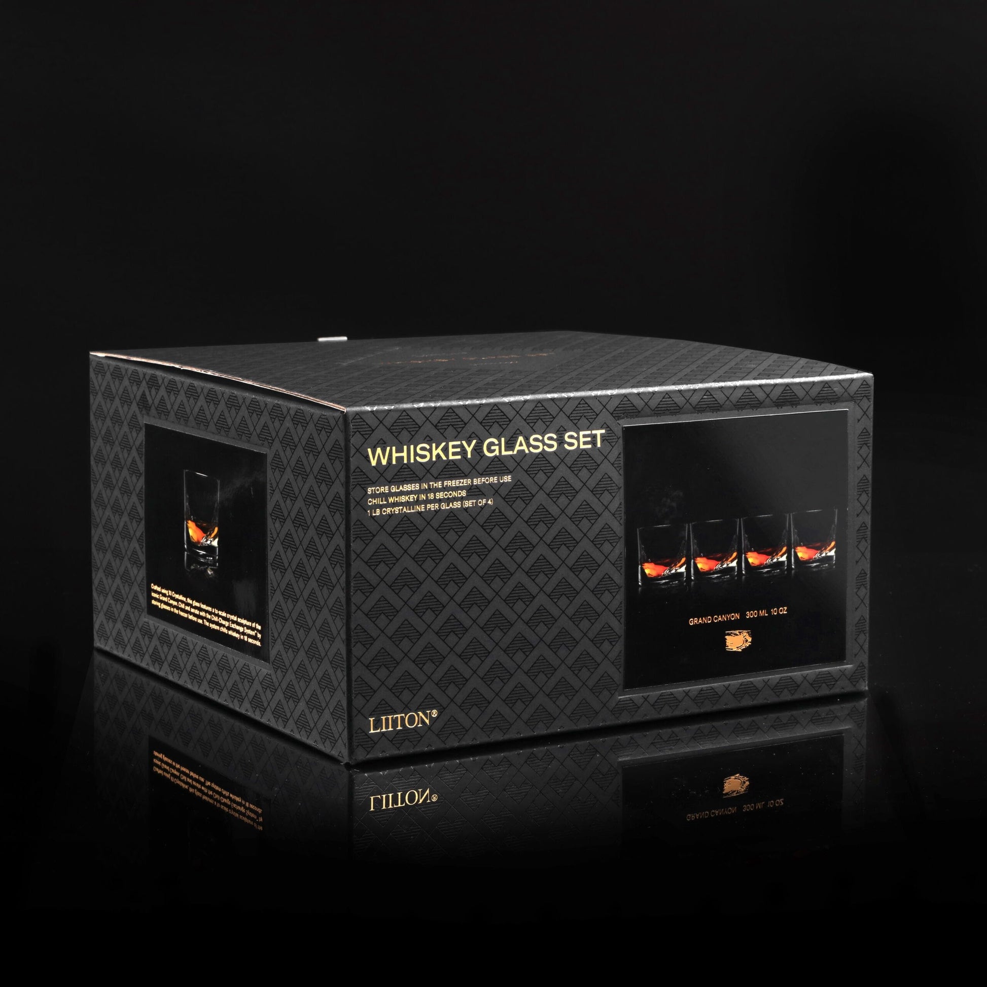 LIITON Grand Canyon Heavy Crystal Whiskey Glasses Gift Set of 4, Thick Freezable Bourbon Glass 1lb Each, Premium Whiskey Gifts for Men, Frozen Crystal Chills Cocktails, 10 oz