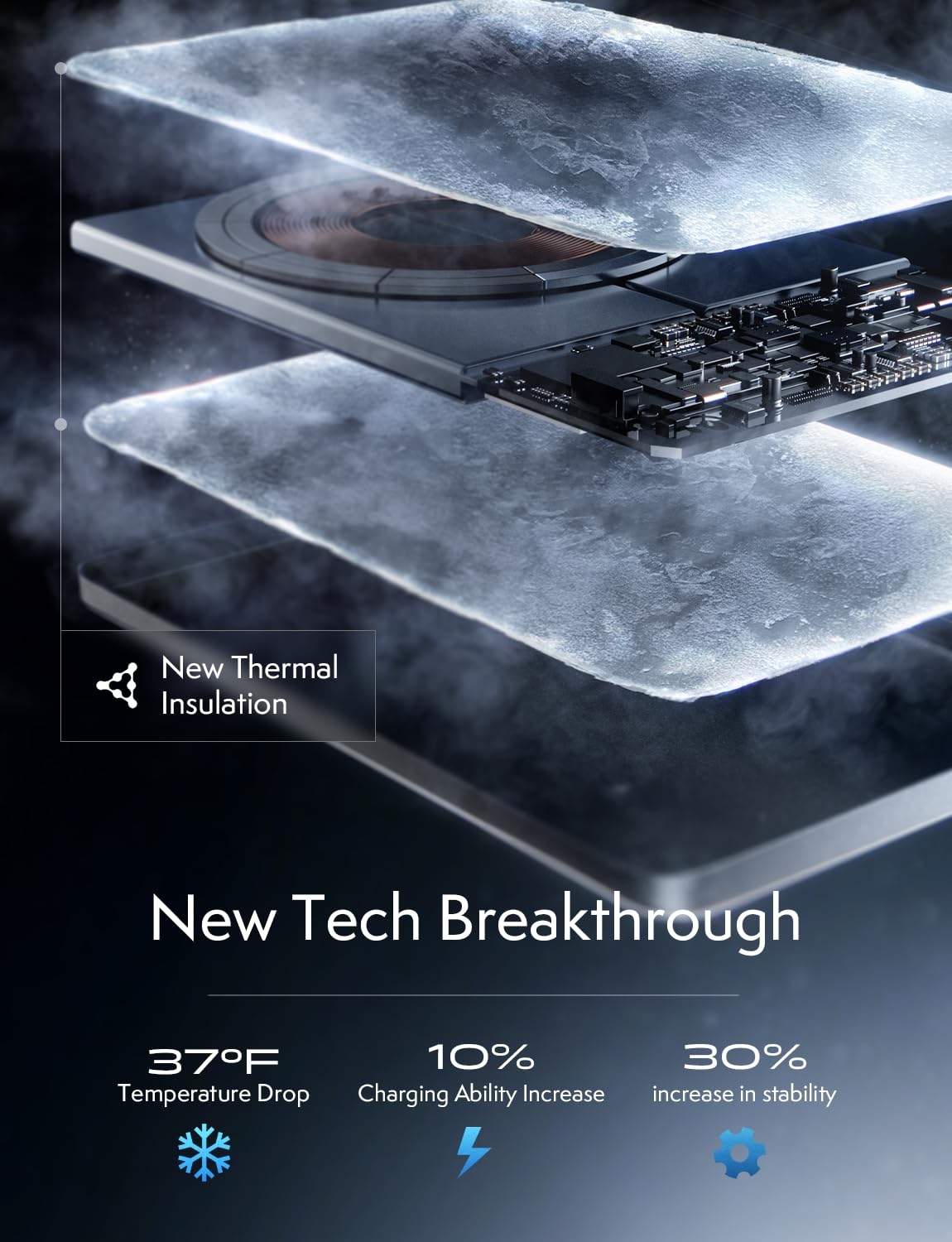 - Fast Charging: Charge your phone up to 100% in just 2 hours with advanced lithium-polymer technology and NTC temperature control, twice as fast as other portable chargers. Note: 7.5W wireless, 18W wired charging; speed decreases after 75%.Not compatible with non-MagSafe cases (may cause heating)