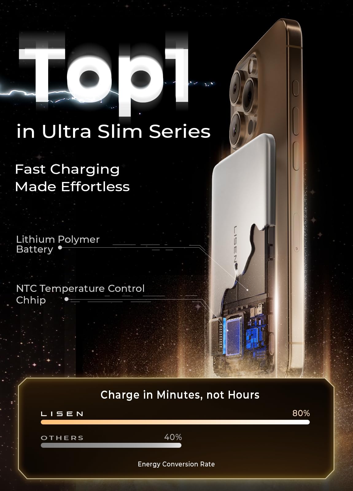 - Ultra-Thin & Portable: The LISEN CardMag magnetic power bank is just 0.3 inches thick, thinner than an iPhone 15, offering mobile freedom without bulk. Keep your devices fully charged without being encumbered.Recently, Major brands recall their products due to safety incidents, LISEN, as a responsible brand, strictly controls the quality of each product to ensure that there are no safety problems!