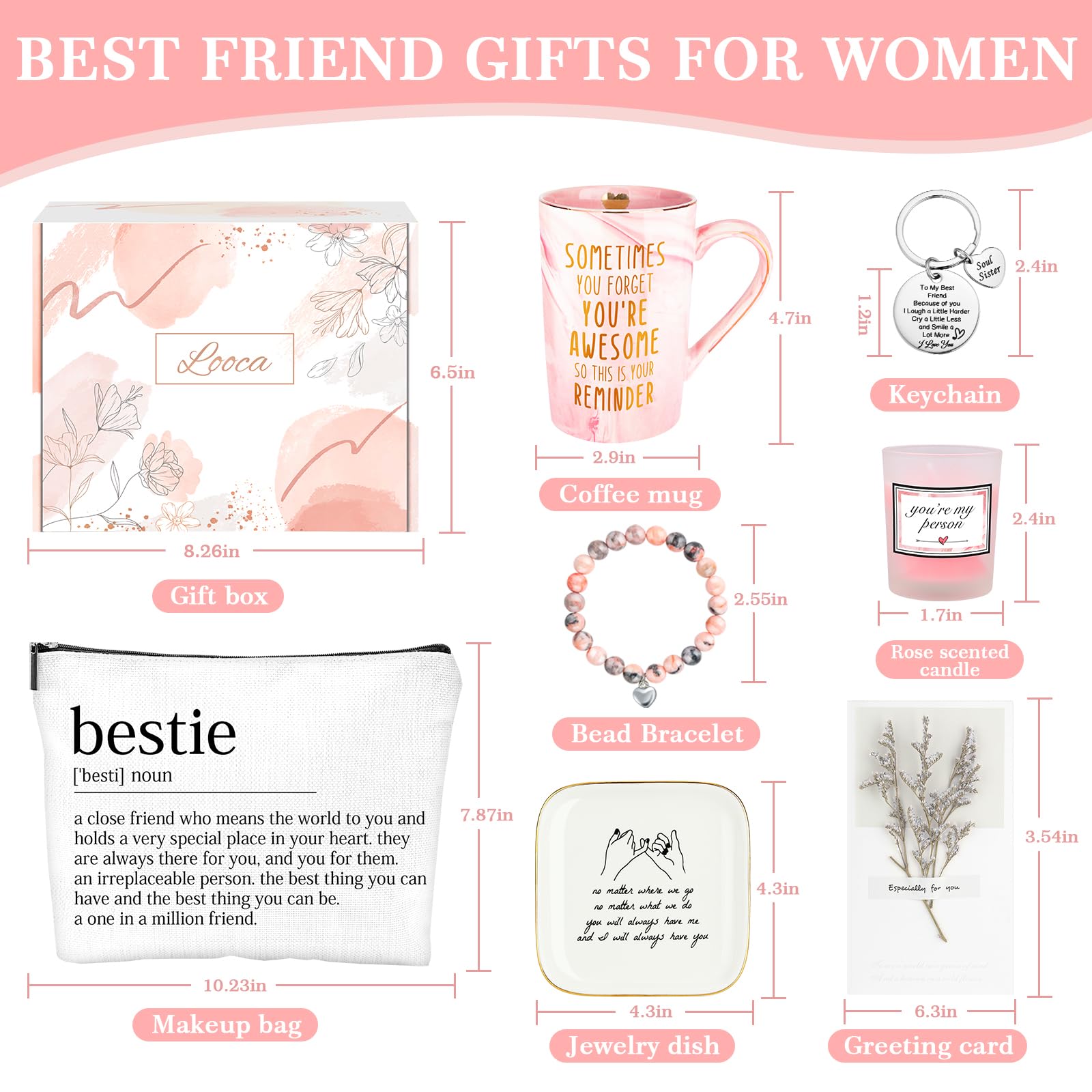 - Gifts for Best Friend Woman: Bestie deserves to have a heartfelt and inspiring set of gifts that express your love and sincerity. The gift box you've prepared for your best friend will become one of the most unforgettable memories of her life, making her feel cherished, cared for, and respected. It will warm her heart and let her know she's truly special.
