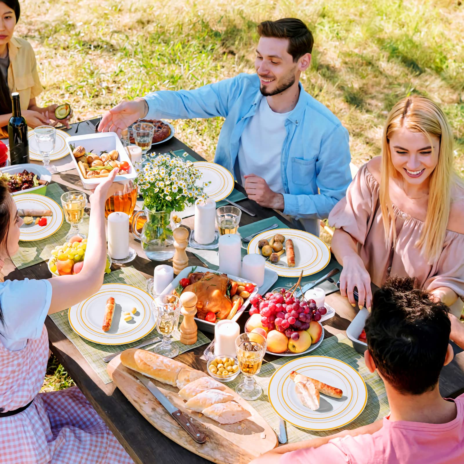 - Premium disposable dinnerware set: Made of premium plastic, offer reliable strength, won't scratch or break easily