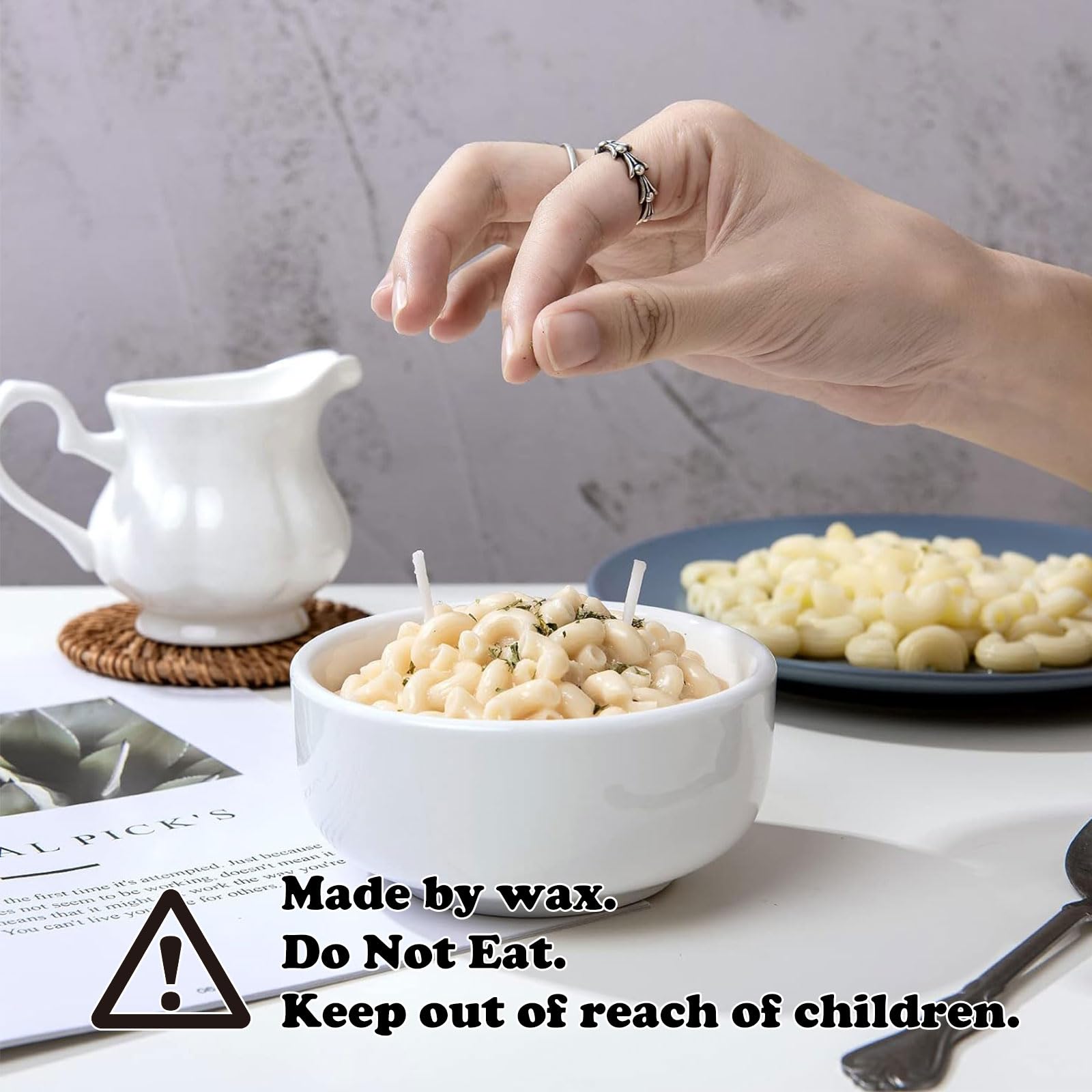 - The exclusive design, handmade. Our handmade macaroni pasta bowl candle smells bowl candle smells exactly like the real cheese. A perfect gift for all simulated food candle! Make this 100% food candle a part of your every meal and wake up feeling cheese and cheerful every day.