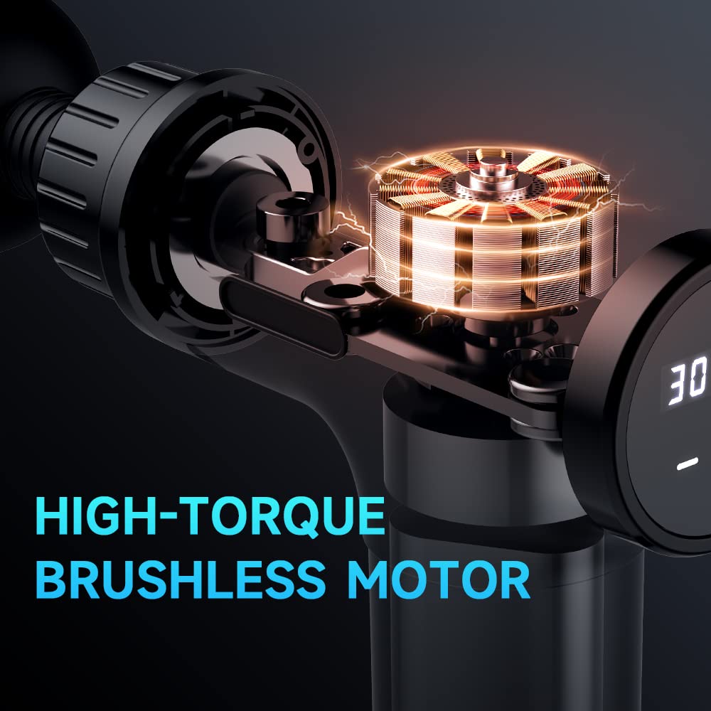 - Features: Built with high-quality materials for durability, this muscle massager gun features a smart LED display showing speed and battery levels, along with a simple on/off button operation