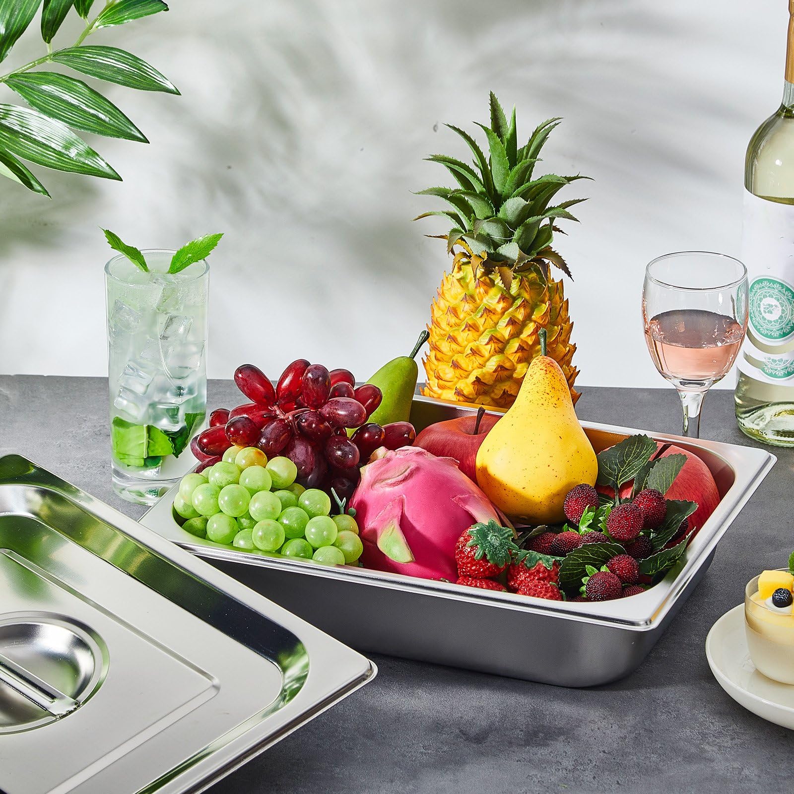 - Durability and Convenience: adorn your kitchen with the steam table pans with lid, constructed from 201 stainless steel; The reliable food service pan for kitchen use doesn't warp, rust, or otherwise get worn out over time; Its polished mirror surface enhances its aesthetic appeal while showcasing its resilience against wear and tear