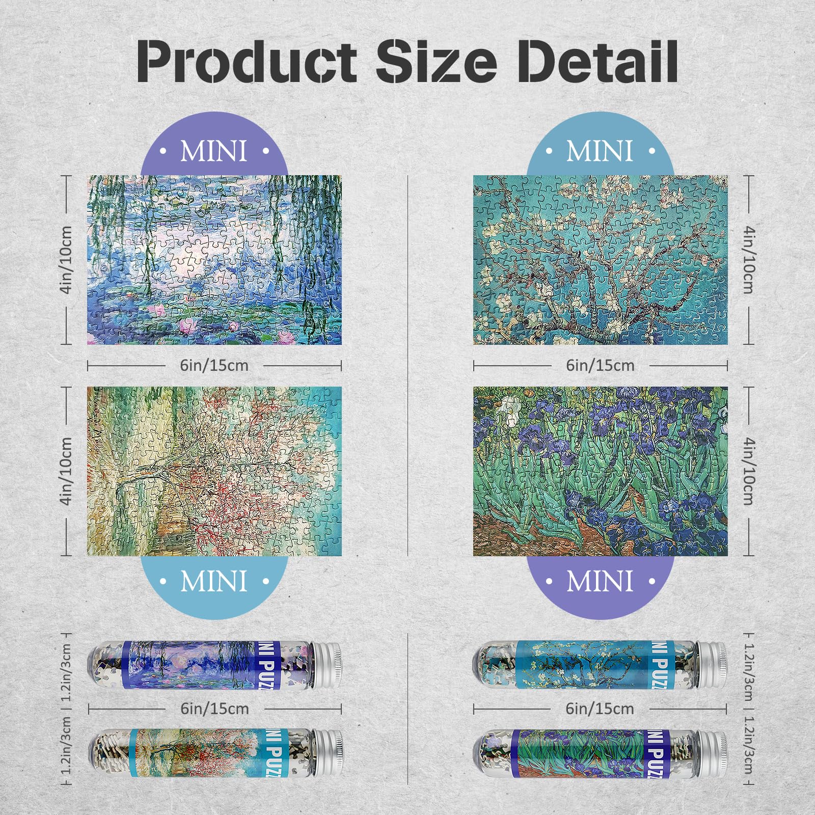 - Small Mini puzzles -- The small jigsaw puzzles for adults consists with 1:1 puzzles poster for reference. Postcard design on the backside of small puzzles. Finished micro puzzles, you can write a blessing on the back and send it to your favorite person.