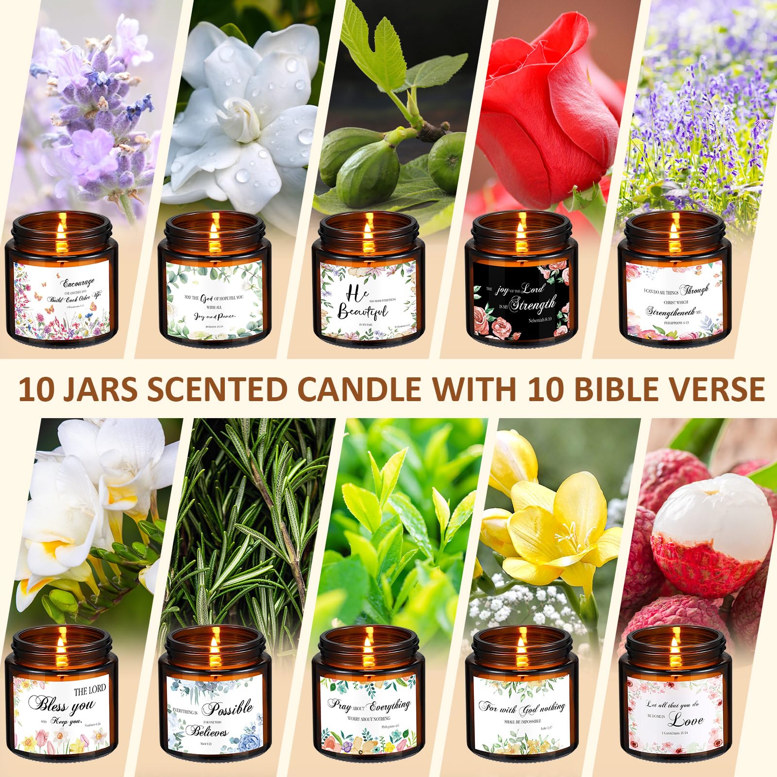 MTLEE 10 Jars Mother's Day Christian Religious Scented Candles 3.5oz Stress Relief Aromatherapy Gifts Natural Soy Decorative Long Lasting Bathroom Candles for Women Birthday Baptism
