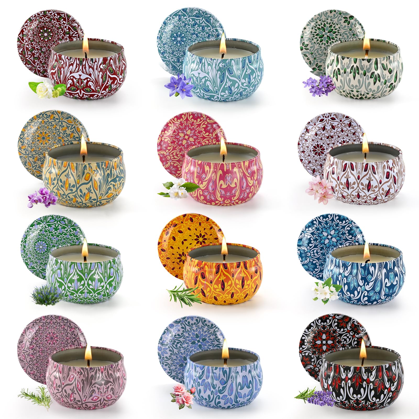 - Long Lasting Time: Scented candles are a powerful tool for people to unwind and recharge, Each soy candle contains 2.5 ounces, The total burn time for 12 scented candles is approximately 240 -300 hours for soothing aromatherapy, You can also trim the candle wick to extend its burning time