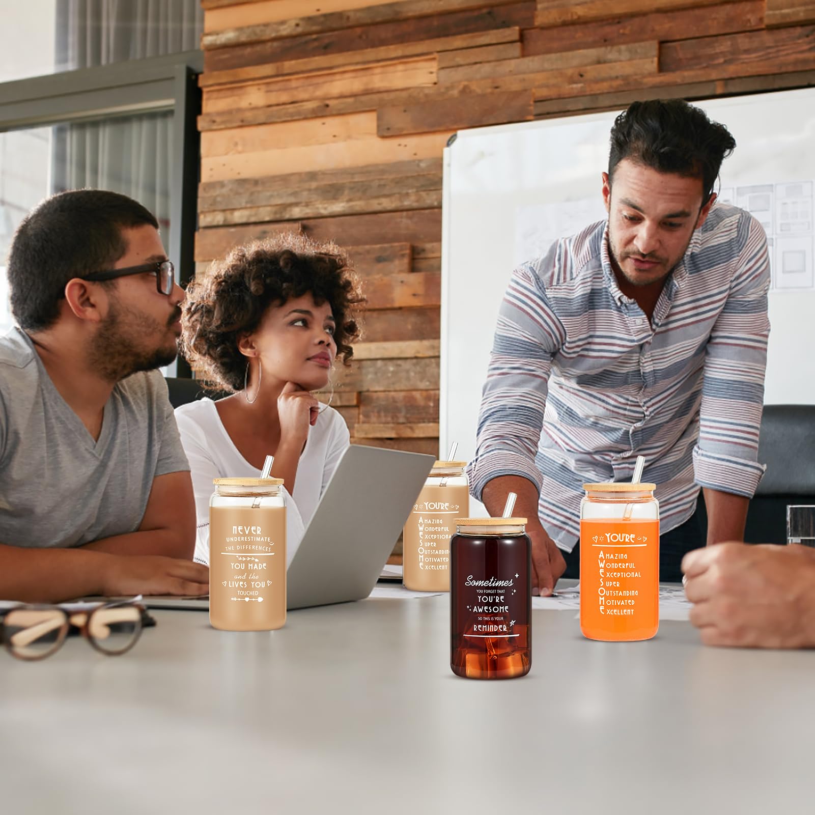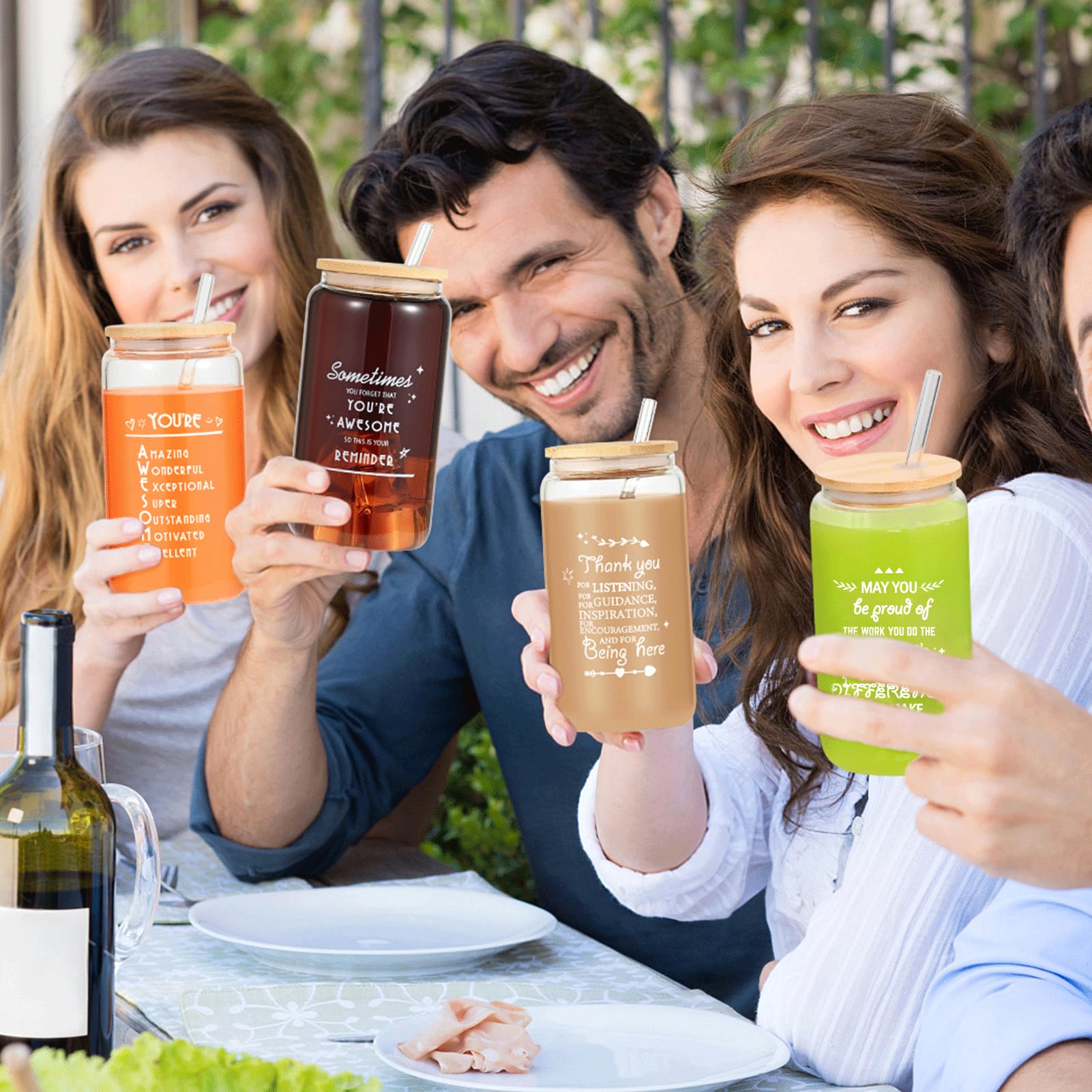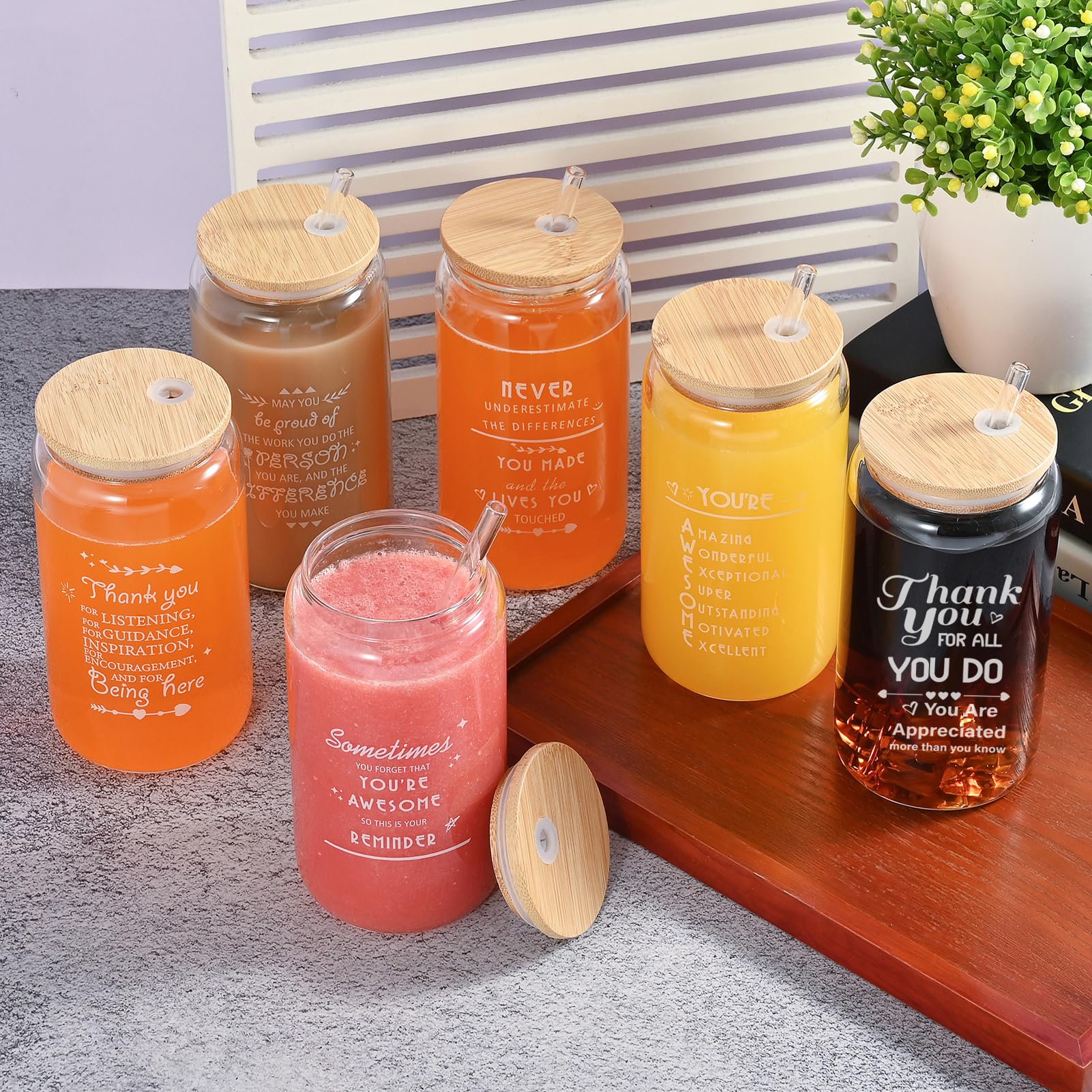 - Employee Thank You Presents Set : Our employee appreciation Presents bulk set includes 12 coffee glass cups with lids, 12 glass straws, 12 straw brushes, 12 present boxes with ribbon, and 12 thanks cards that can be written to anyone. A present that is personalized yet practical that can be added to any present set, and the unique design makes them can serve as Presents to your coworkers, employees, teachers, nurses, mother, family, friend, and others, or even home bar decor just to name a few ideas