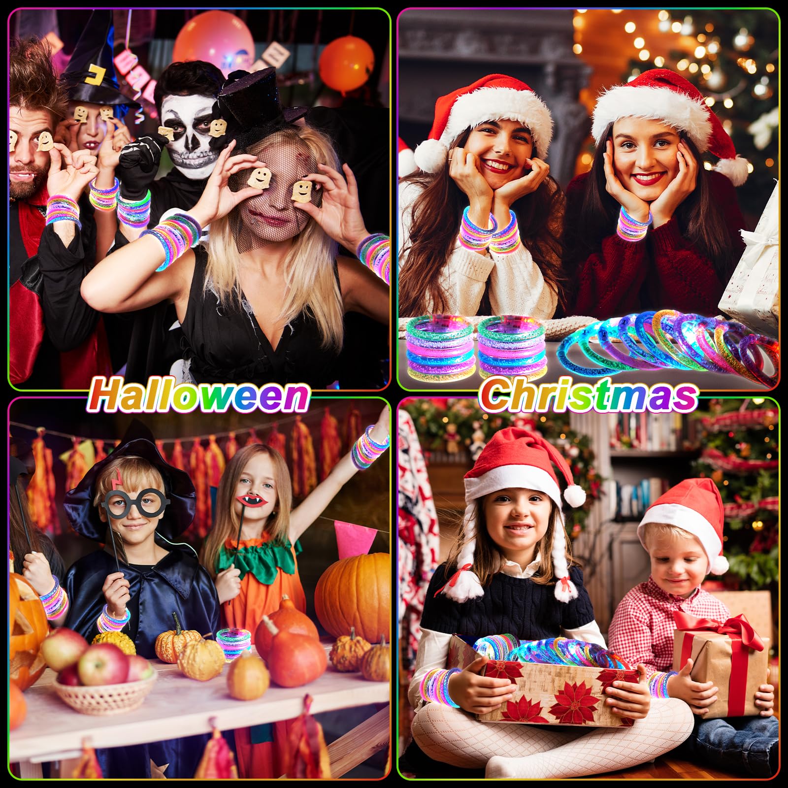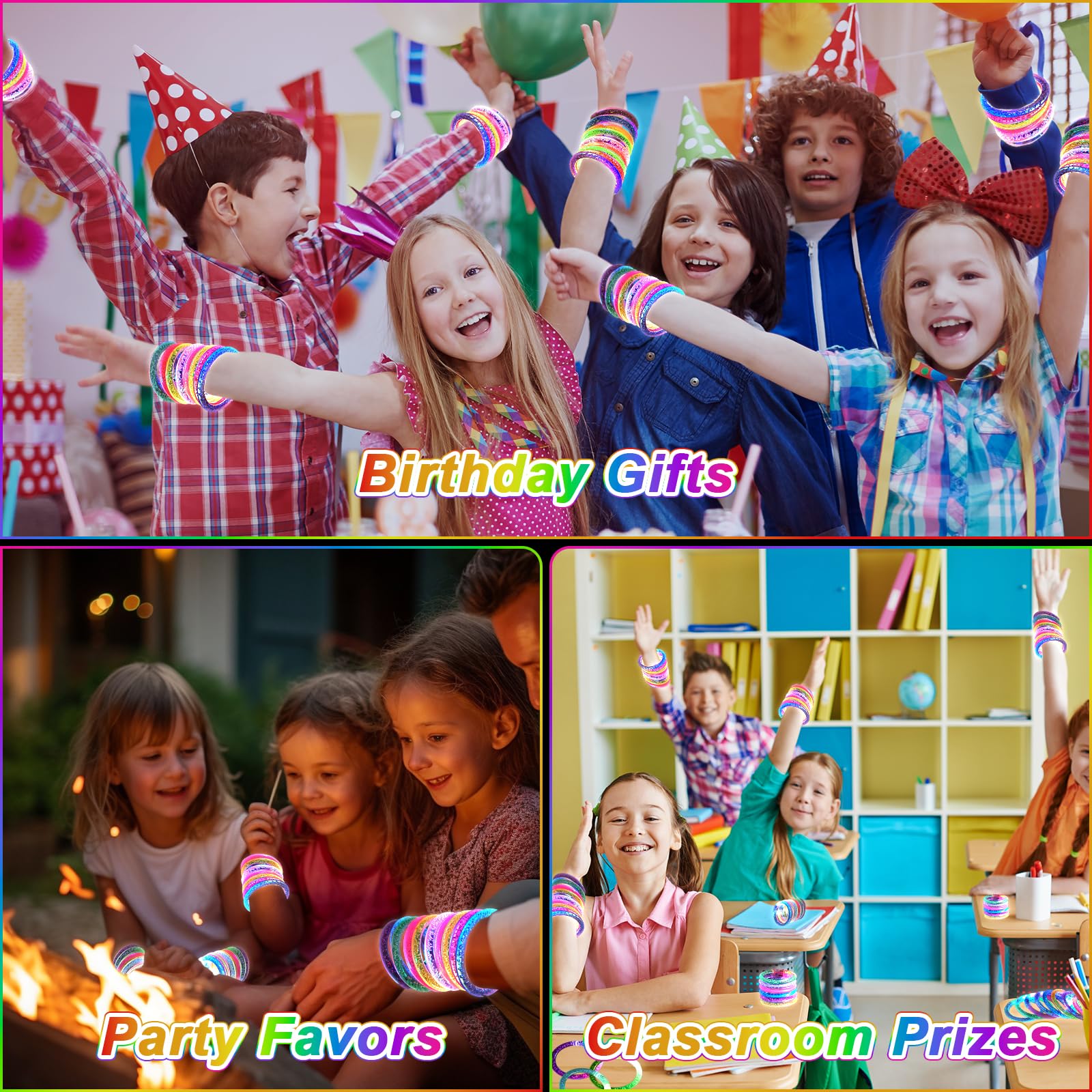 - Let's Party:You can use these light up bracelet as night activities,birthday party,beach party,pool party,animal party,wedding,concerts,dancing party,bar,nightclub,camping,raves,stockings stuffers, halloween, new years, christmas, school classroom Reward. Try to enjoy the joy of glow in the dark toys in more special occasions