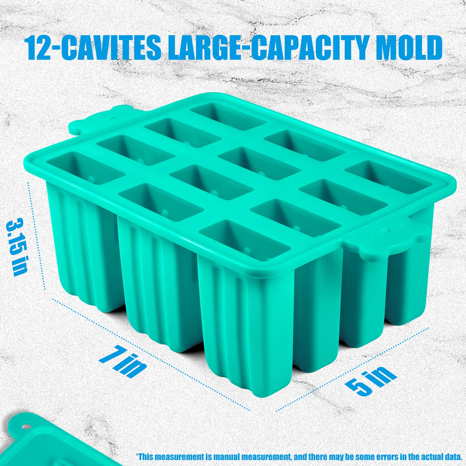 - 【New Light Blue Popsicles Molds,New 12 Cavity Ice Cream Maker】Made with High Quality Silicone ,Food Grade .No have Any Smell and Taste.