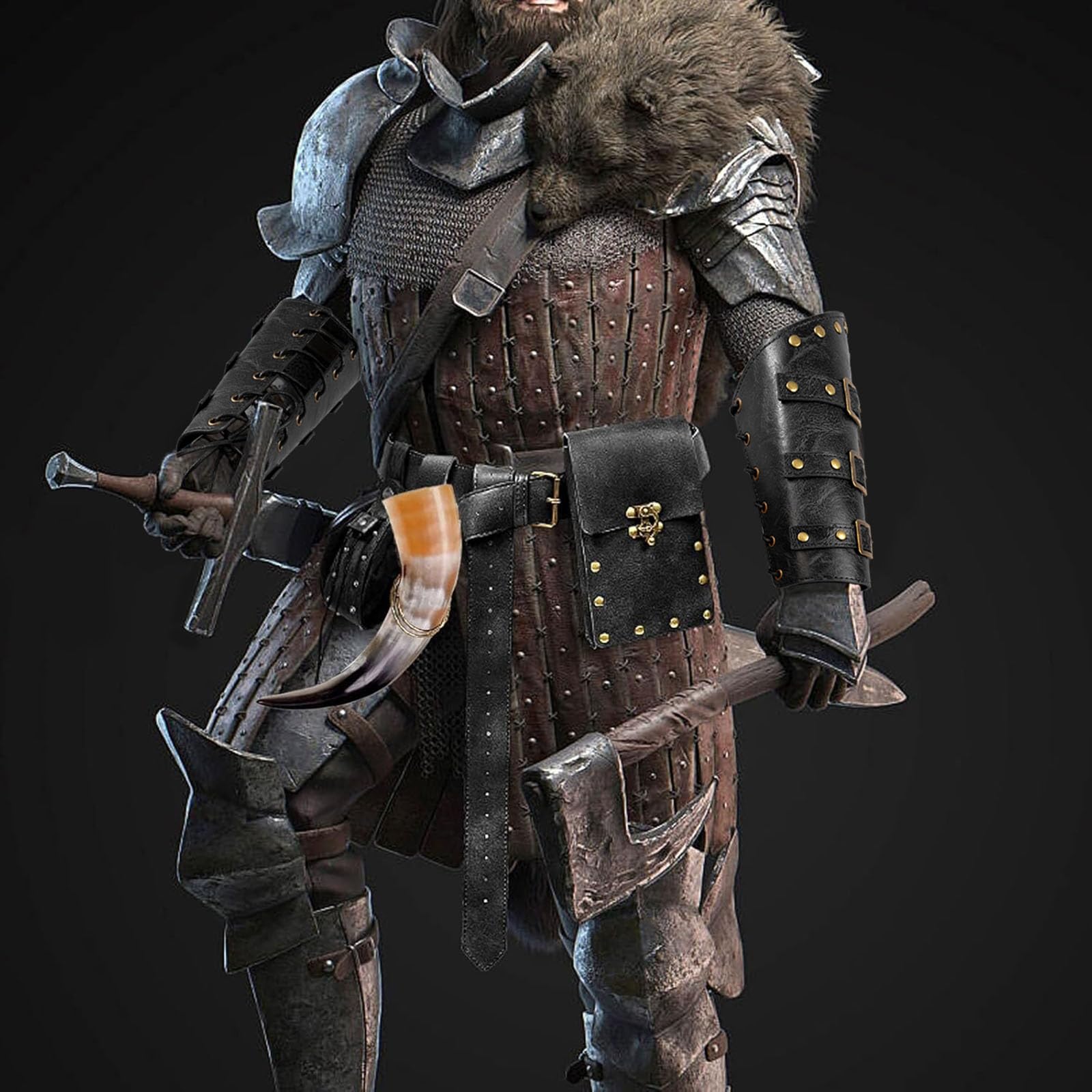 - - More Style & More Function fit the most ocassions. 1 detachable Belt + 1 Pairs Leather Bracers + 1 Belt Pouch + 1 leather Hook Strap, Great as costume piece or daily use. Good Quality. Renaissance Belt Pouch Purse Viking Bracers Hook Halloween Set Medieval Festival Costume Accessories Steampunk Metal Casual Fanny Pack Waist Bag for men women.