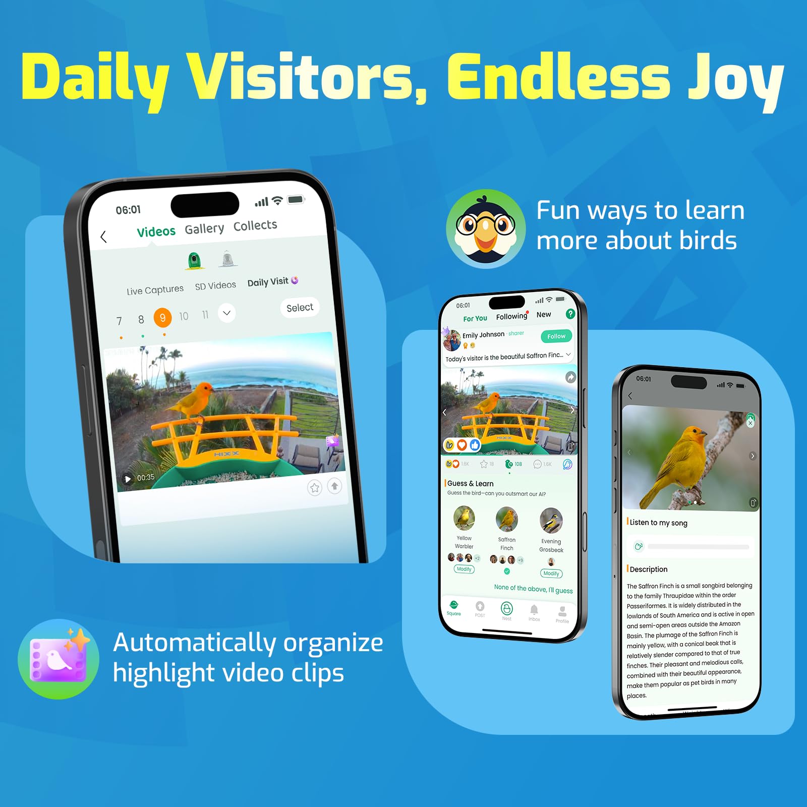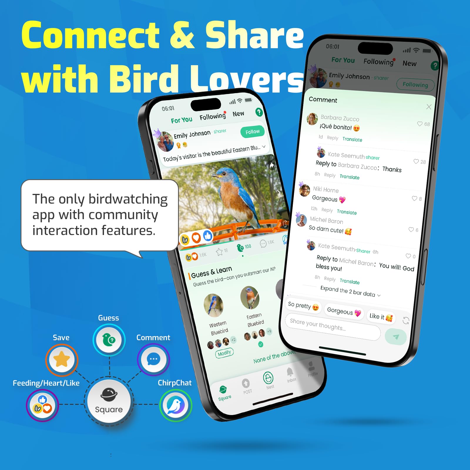 - 【Lifetime Free AI Bird ID】Receive instant alerts when hummingbirds visit your hummingbird feeder camera. Watch, save, and share recorded clips in the CoolFly app. Post your sightings on CoolFly Square to get AI-generated species identification or let the community help identify them. Turn every visit into an interactive learning experience.