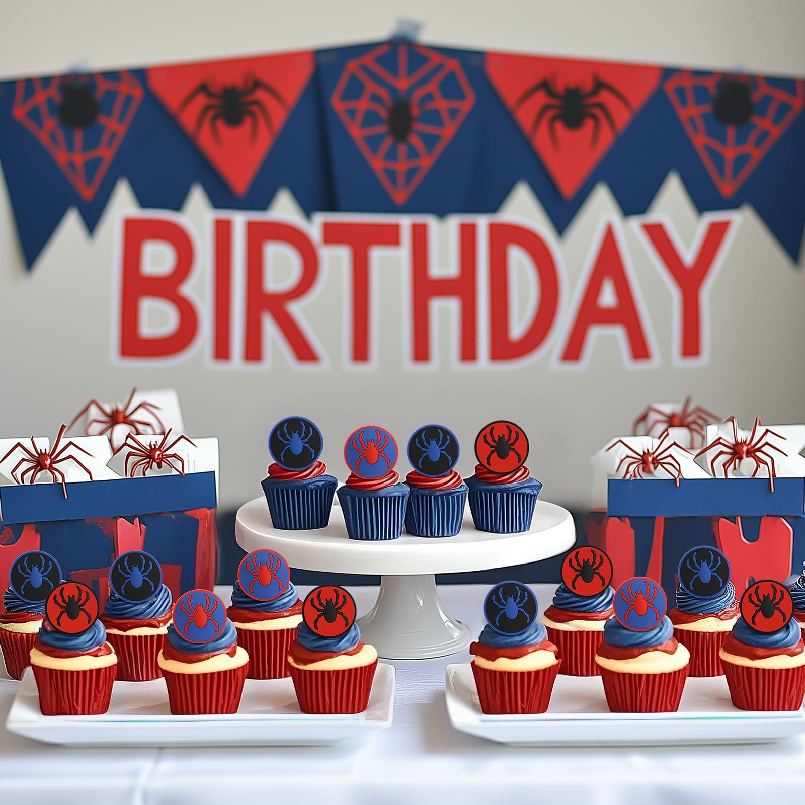 - 48-Piece Spider Cupcake Rings Set: bring a heroic feel to your sweet treats with 48 lively and colorful rings; They come in three eye-catching color combinations (red/blue, red/black, blue/black), making them great for adorning cupcakes, cakes, donuts and other desserts