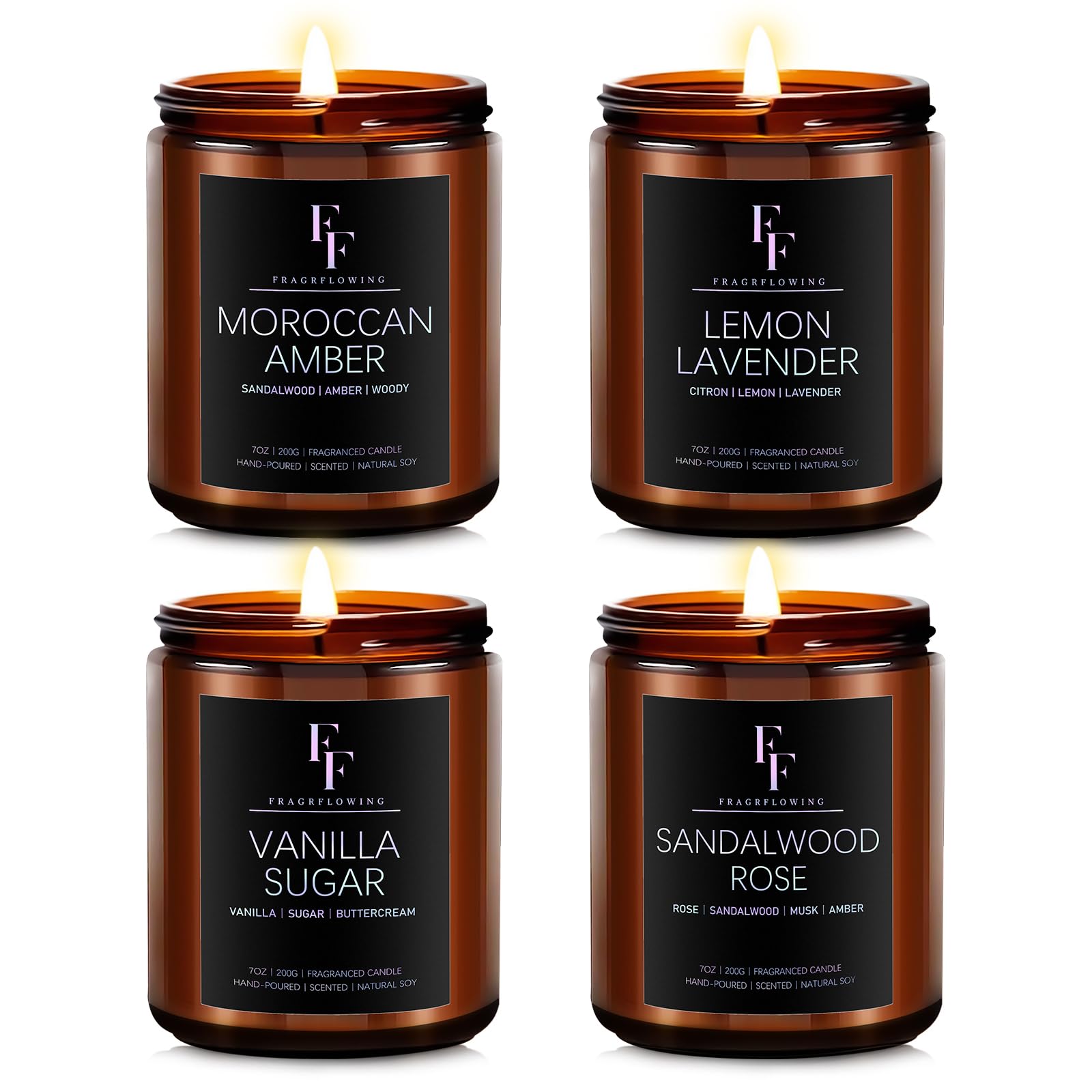 Scented Candles for Home Scented Aromatherapy Candles, 4 Pack 28 Oz Soy Wax Candle Gift Set for Women Men (Lemon Lavender/Vanilla Sugar/Sandalwood Rose/Moroccan Amber)