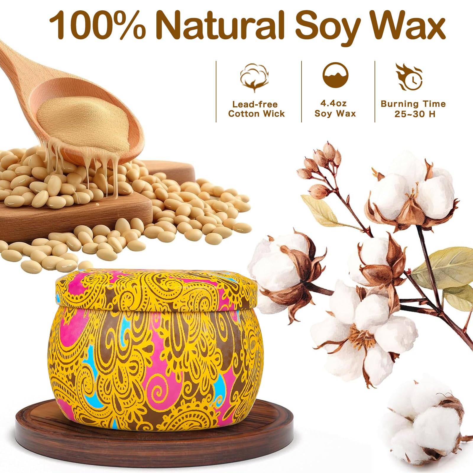Scented Candles Gifts Set for Women, Aromatherapy Candles for Home Scented, Upgraded Large Tin of Soy Candle Lavender Candle Birthday Gifts for Women Mom Bath Spa Meditation Valentine Gifts Candles