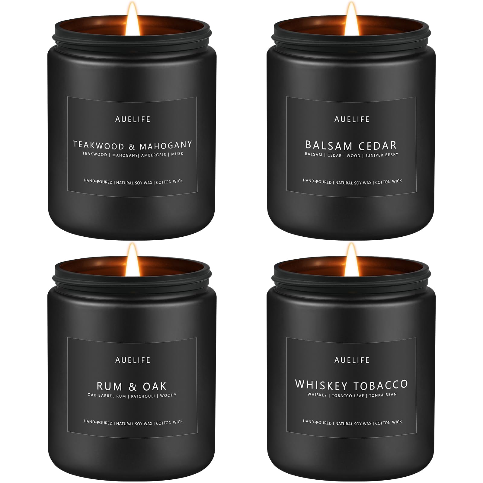 Scented Candles Set | Candle Gifts for Men - Masculine Candle, Soy Candles for Home Scented - 4 Pack Aromatherapy Gift for Dad Fathers Day- Scent of Teakwood & Mahogany/Whiskey Tobacco/Rum & Oak/Cedar