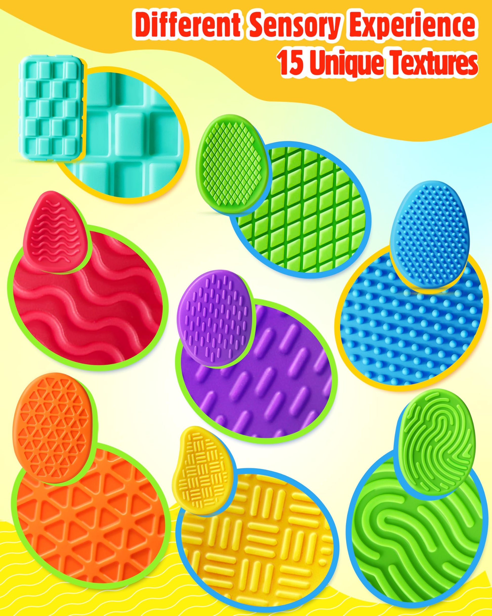 Sensory Fidget Toys for Kids Adults: 16 Pack Textured Silicone Worry Stones for Anxiety Relief, Sensory Stress Toy for Autism Kids Calming, Quiet Small Fidgets for Classroom Prizes