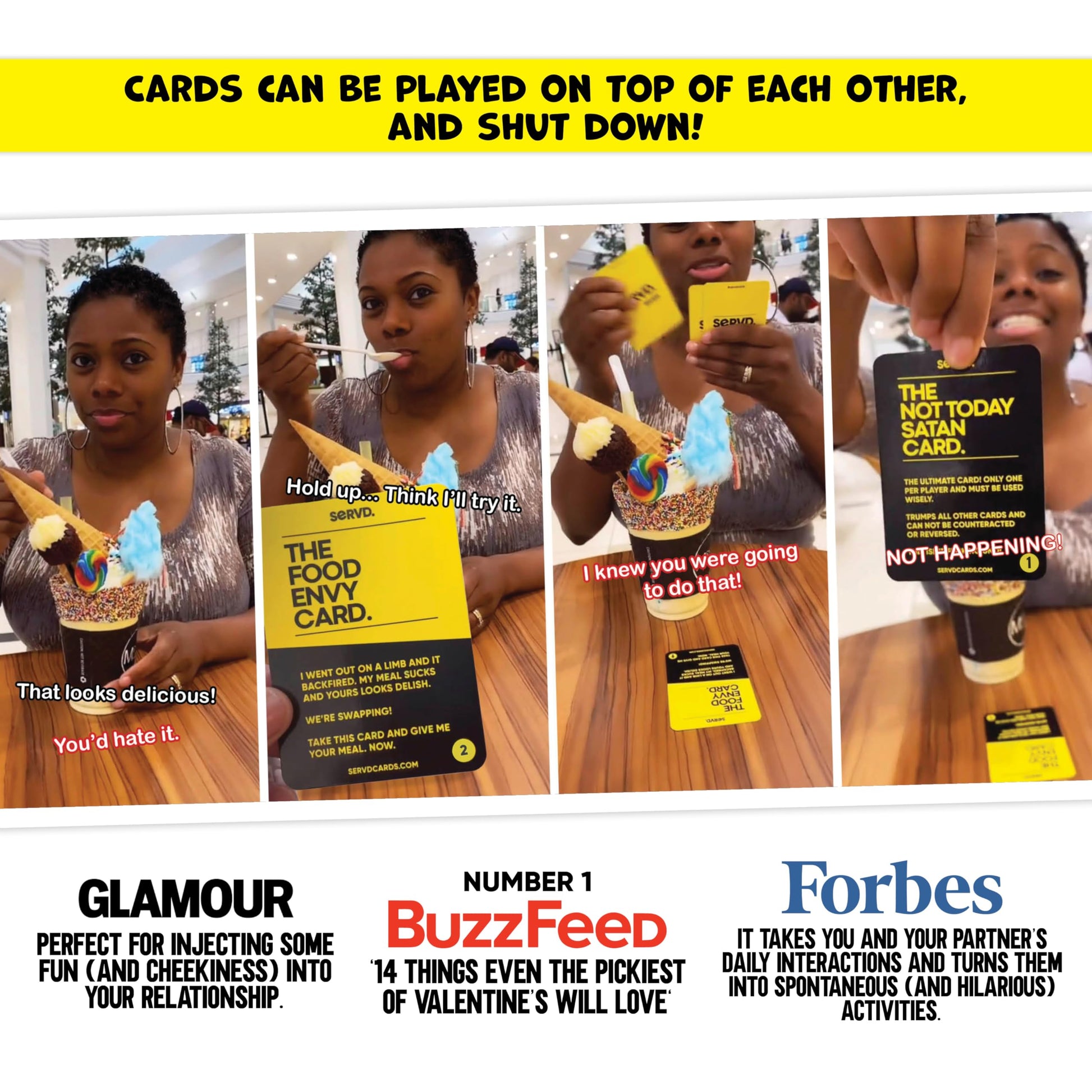 - Forget everything you know about card games – SERVD gamifies everyday life and takes scenarios that come up between you and your partner and turns them into hilarious actions in a card game. Ultimately injecting some fun, cheekiness, and strategy into all types of situations!