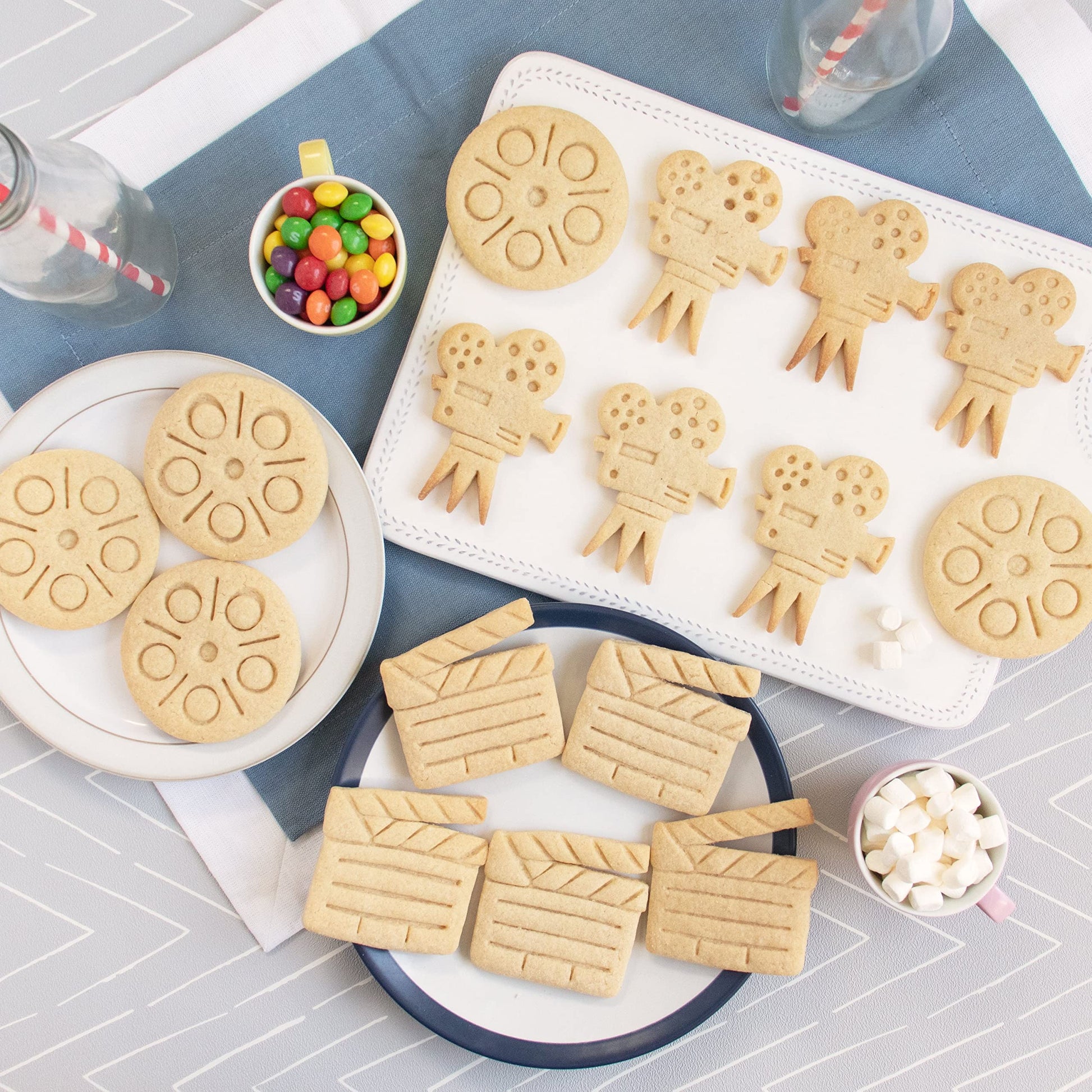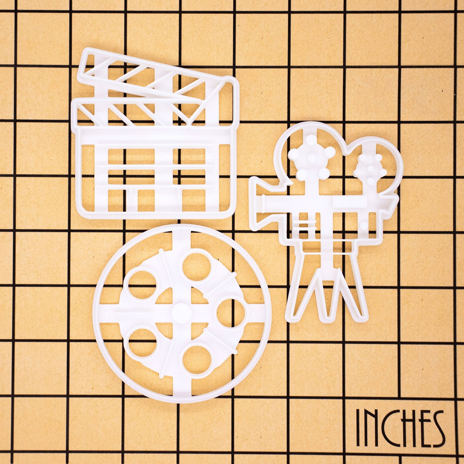 Set of 3 Movie themed cookie cutters (Designs: Movie Reel, Video Camera, and Clapboard), 3 pieces - Bakerlogy