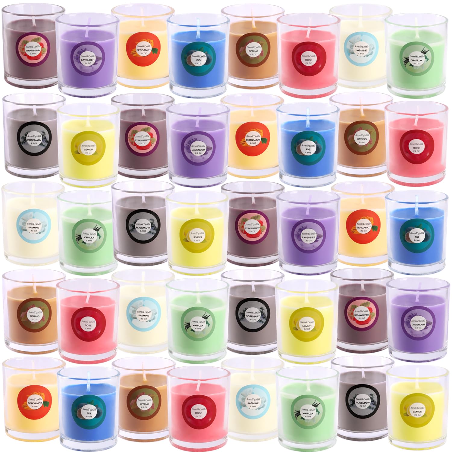 Set of 40 Scented Candle with 10 Fragrances, Soy Wax Aromatherapy Strong Scented Candle in Glass Jar for Women Home Decor