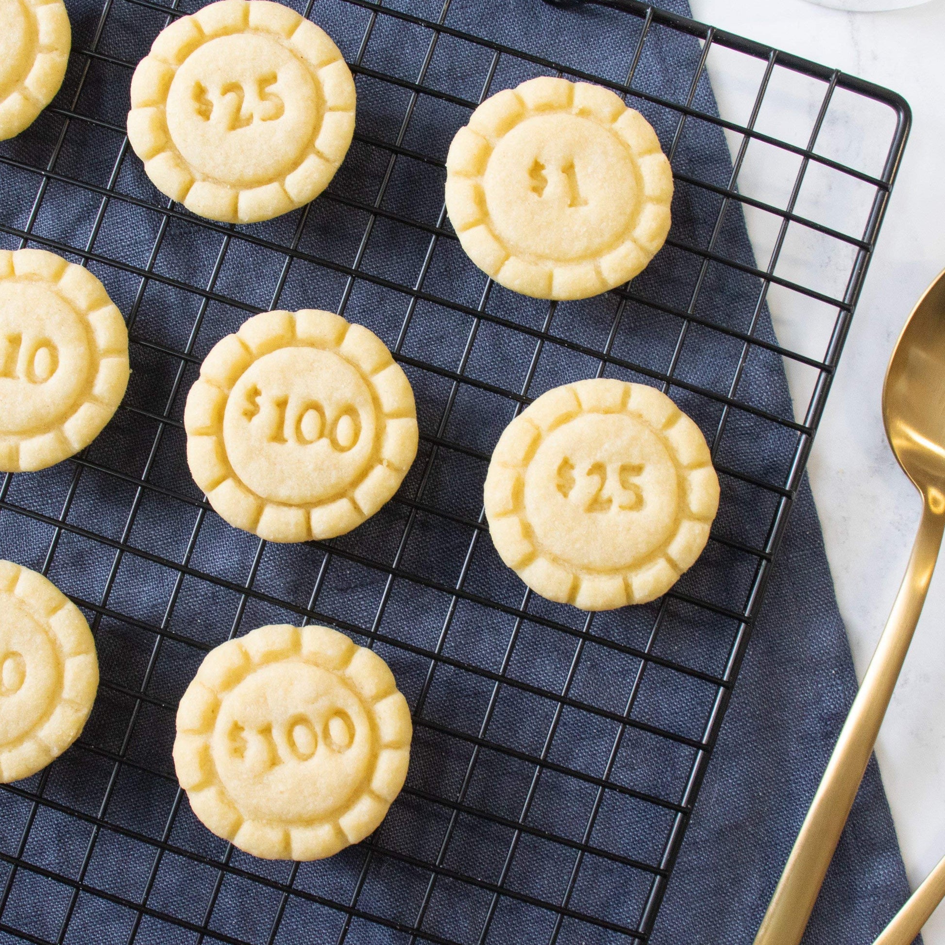 Set of 5 Poker Chip cookie cutters (Designs: Value 1, 5, 10, 25, and 100), 5 pieces - Bakerlogy