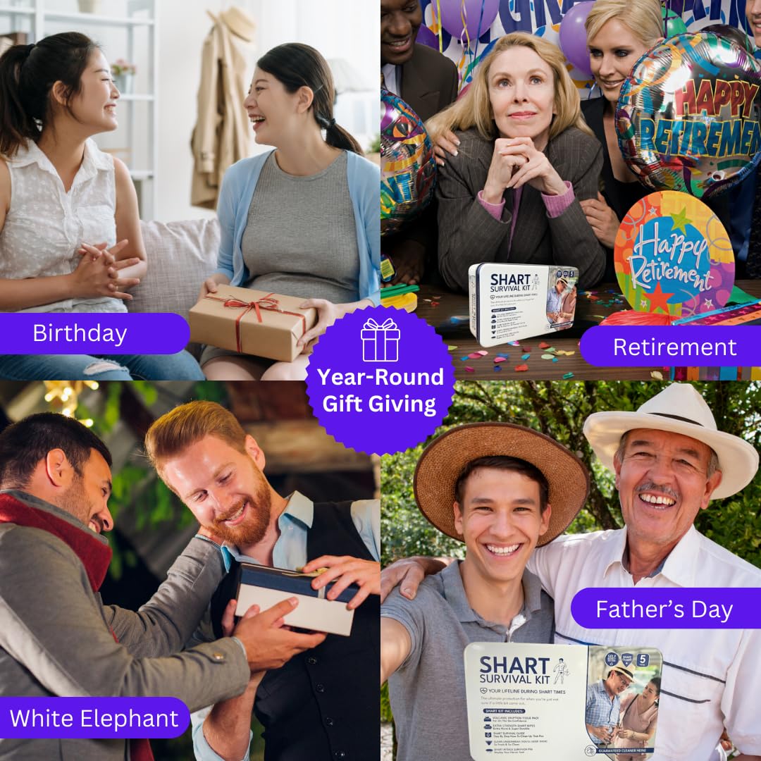Shart Survival Kit | Funny White Elephant Gag Gift | Hilarious Over The Hill & Retirement Prank Box with Wet Wipes, Disposable Underwear, Tissues & Sharting Survival Badge | Novelty Joke Set for Men
