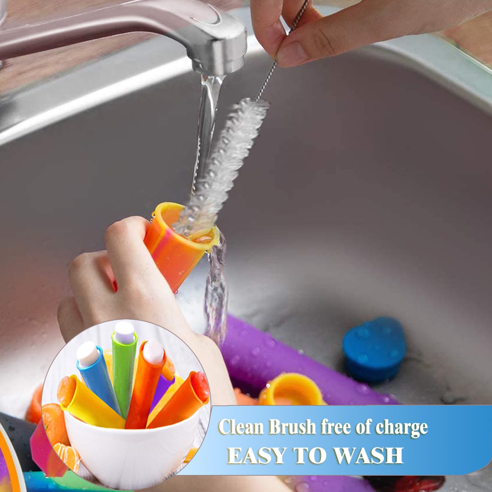 Silicone Ice Pop Molds Wpunwen Ice Popsicle Molds with Lids 6 Pcs Silicone Popsicle Molds for Kids with Clean Brush Durable Reusable Popsicle Tubes Multi color