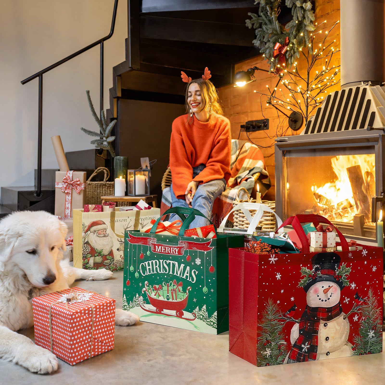 - ๐๐ก๐ซ๐ข๐ฌ๐ญ๐ฆ๐๐ฌ ๐๐ข๐๐ญ-๐๐ซ๐๐ฉ๐ฉ๐ข๐ง๐ ๐๐๐ญ: This collection includes 12 extra-large vintage-style Christmas gift bags (16.9' x 12.6' x 6.7'). Each bag is amply sized to hold substantial presents and comes in a selection of four traditional Christmas hues, adding a classic touch to your festive wrapping.