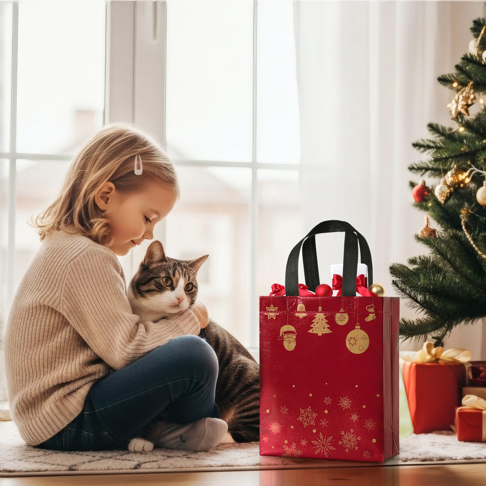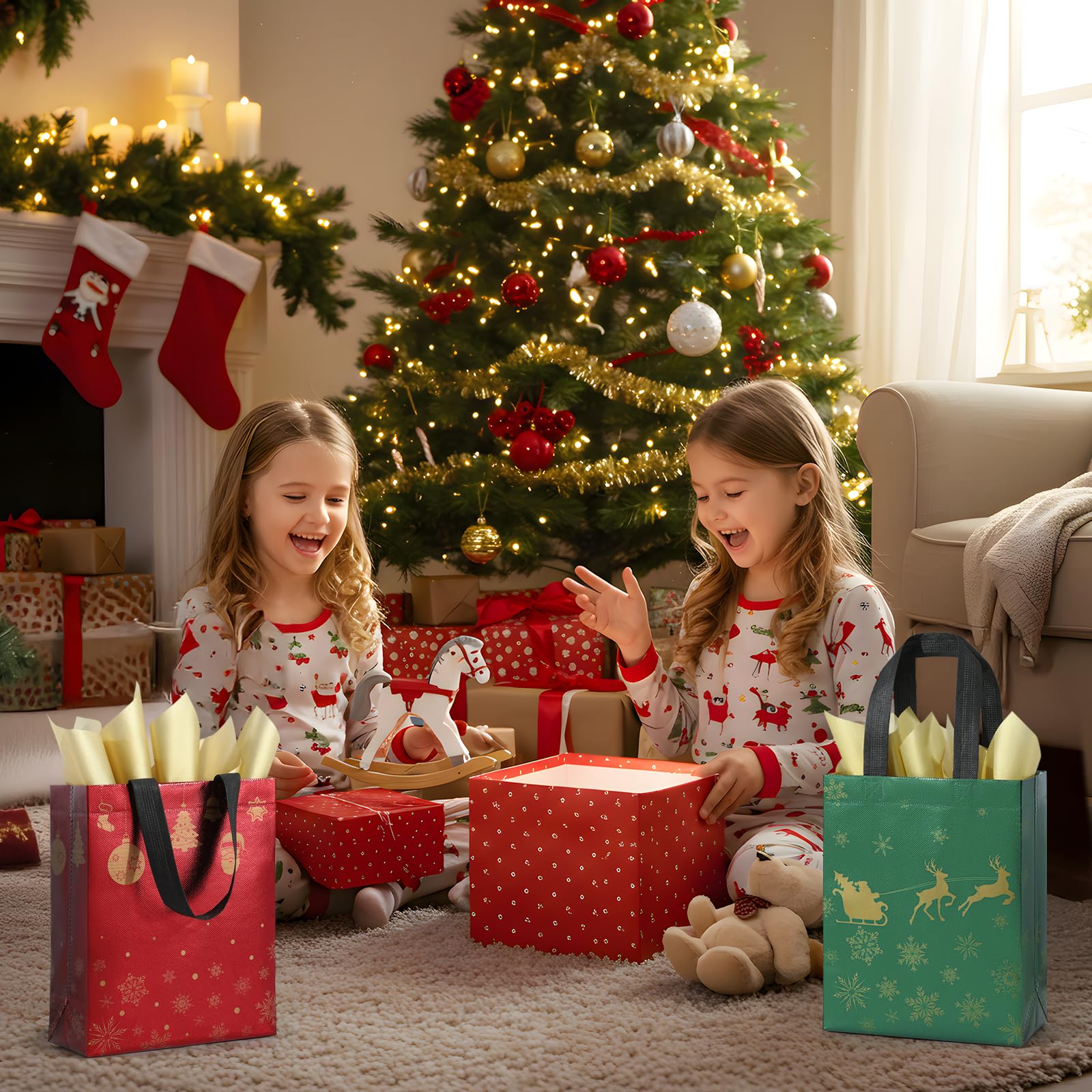 STYPOP 16 Pack 10" Christmas Gift Bags Medium Size with Tissue Paper, Reusable Non-Woven Christmas Tote Bags with Handles, Perfect for Holiday Gift Wrap/Party Favor Supplies, 10.2" ร 8.3" ร 4"