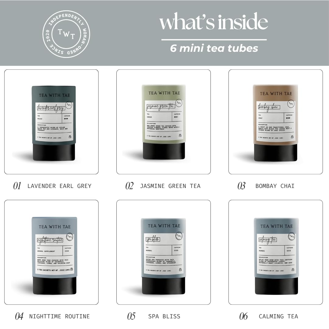 - DIVERSE PREMIUM TEA BLENDS: Nighttime Routine, Spa Bliss, Calming Tea, Jasmine Green Tea, Bombay Chai, and Lavender Earl Grey.
