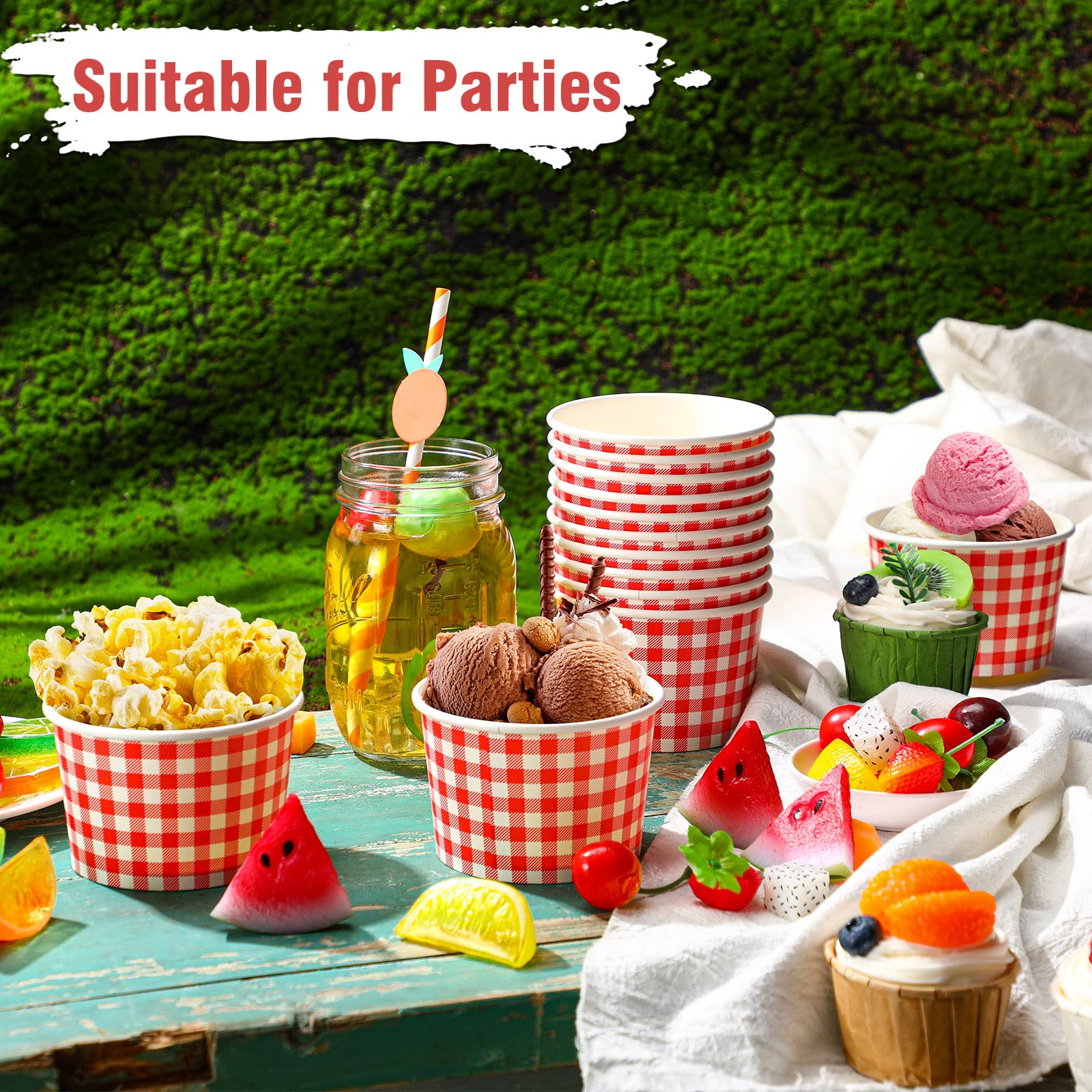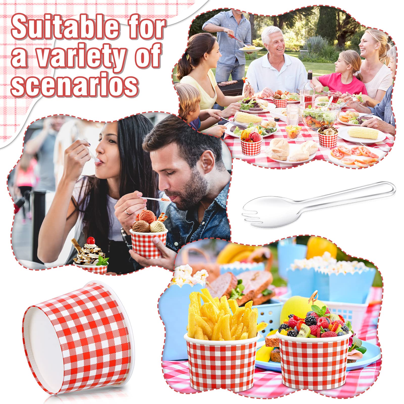 - Wide Usage: our sundae cups adopt classic red and white plaid design to make your ice cream look more delicious; In addition to serving ice cream sundaes, cold milk and other cold foods, these disposable bowls can also be applied to serve hot dishes, such as macaroni and soup; And they are also a good choice for snacks and cakes