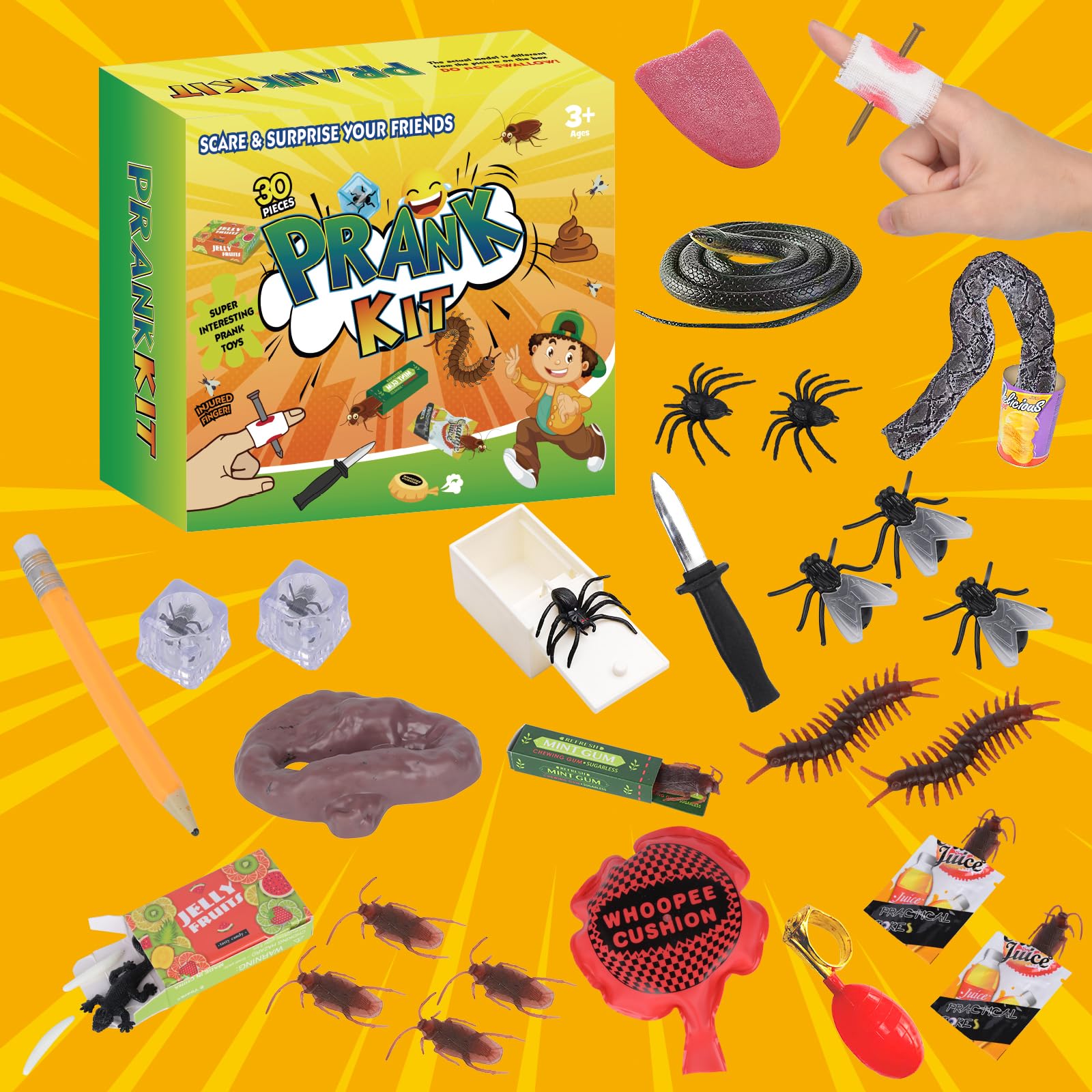 Think Wing Prank Kit Funny Gag Gifts, Joke Box Ultimate Gift Set, Practical Jokes Perfect Party Favors 30 PCS Pranks for Kids Adults, April Fools Jokes Toys