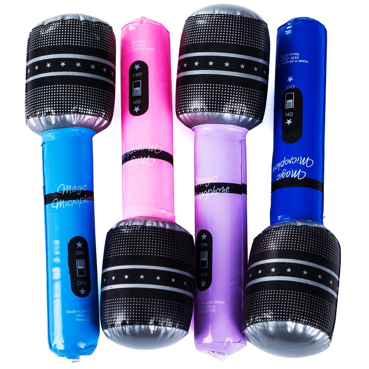 - 12, inflatable 10' microphones for you to feel your inner Rock Star. Microphones are easy to inflate.