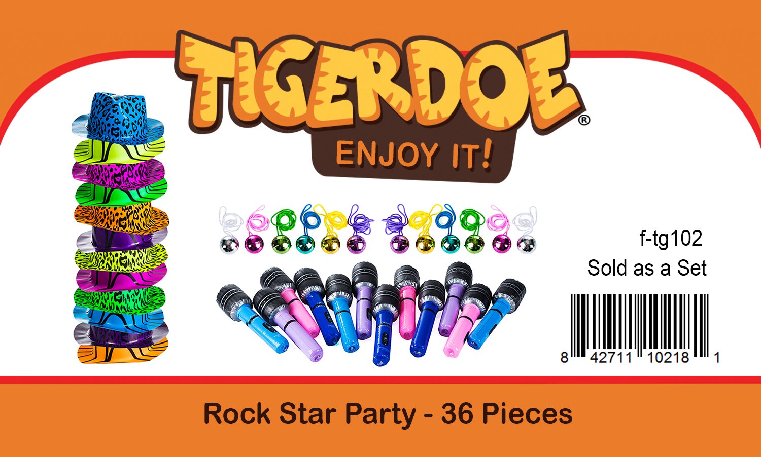 Tigerdoe Rock n Roll Party Favors - 36 Pc Set - Rock Star Party Hats, Disco Ball Necklaces, Inflatable Microphones - Rocker Party Supplies