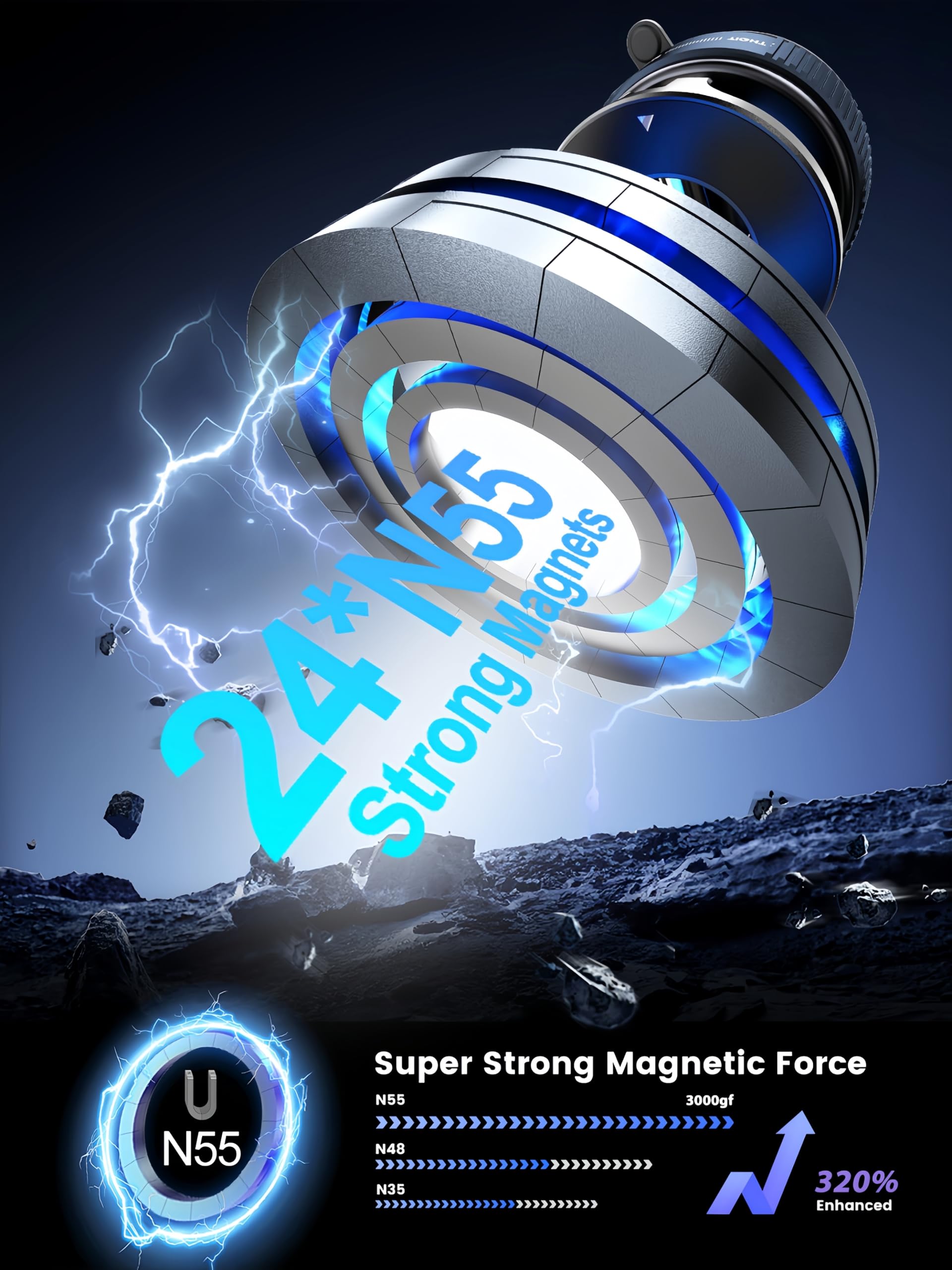 - 【Strong Suction】This vacuum magnetic phone holder features an upgraded 4-layer nano gel suction base with rotary vacuum-seal technology. Simply twist the dial to secure it firmly on flat surfaces like leather dashboards, windshields, center consoles, or side windows. Delivers 80% stronger hold than traditional push-style mounts, staying rock-solid even on bumpy roads. (Pro tip: Rinse the suction cup with water to restore its original grip if adhesion weakens).