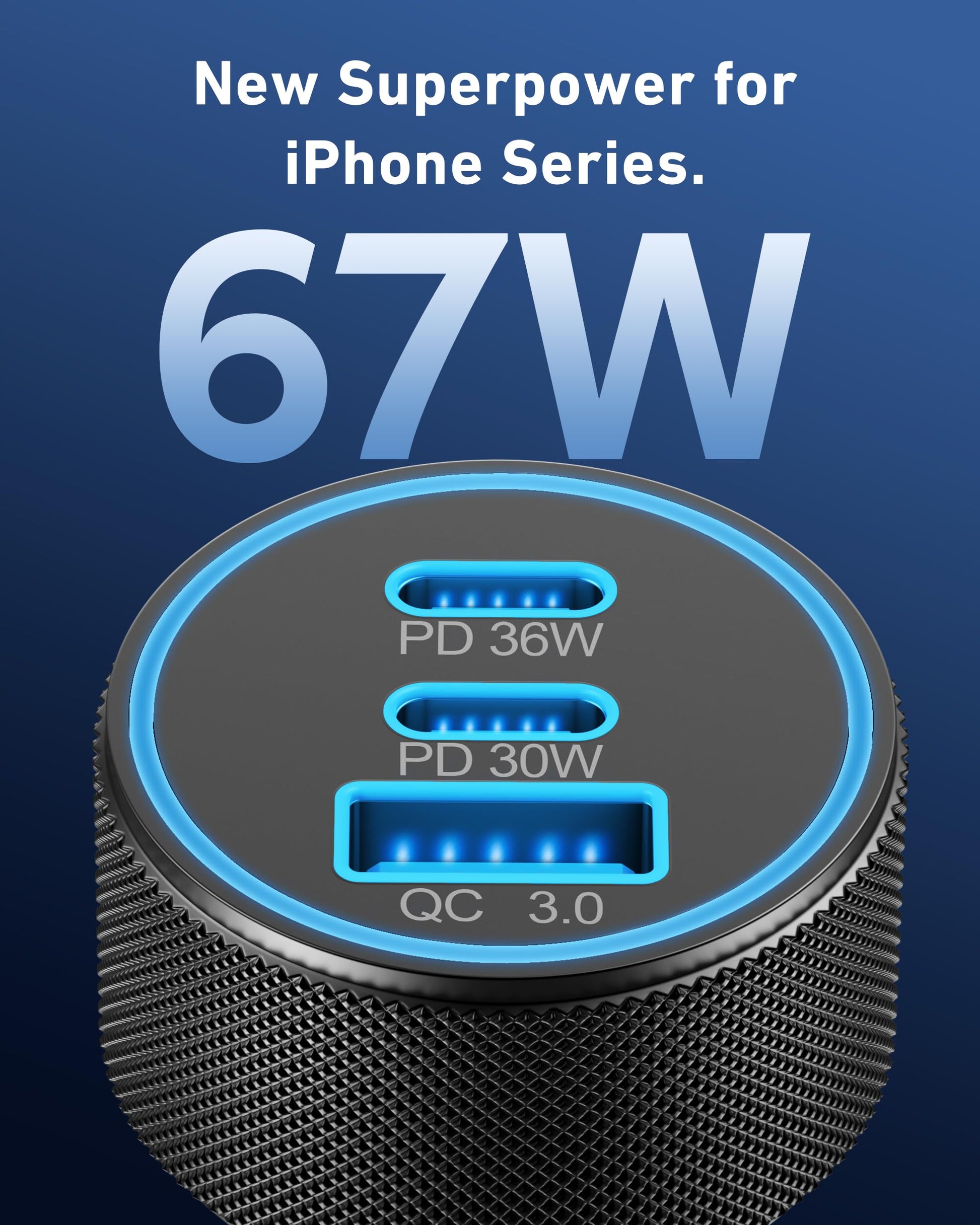 - What You Get: 2-Pack 67W 3-Ports USB-C & USB-A Car Charger Accessories for women and men, Two-Year Replacement.