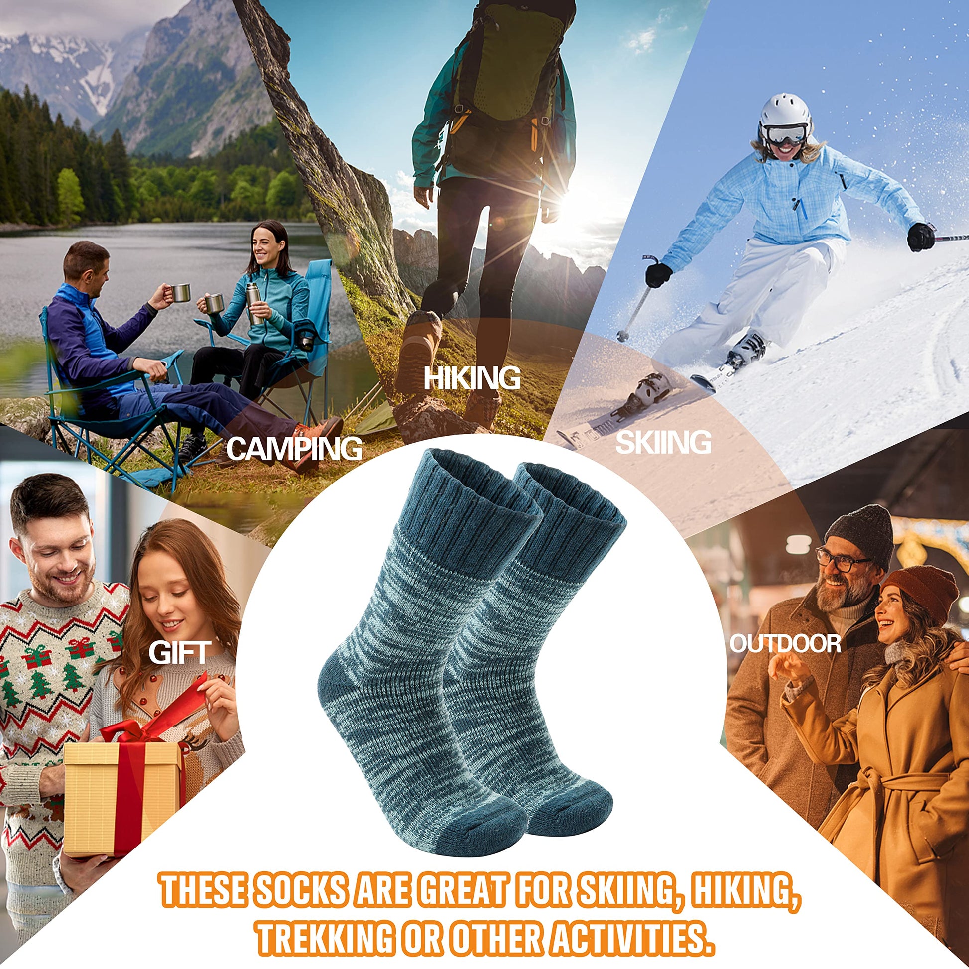 - 【Best Gifts for Men & Women】The winter insulated socks are best gift for men & women, they can be Christmas gifts, birthday gifts, Valentine’s Day gifts, Father’s Day gifts, Mother’s Day gifts or other holiday gifts.