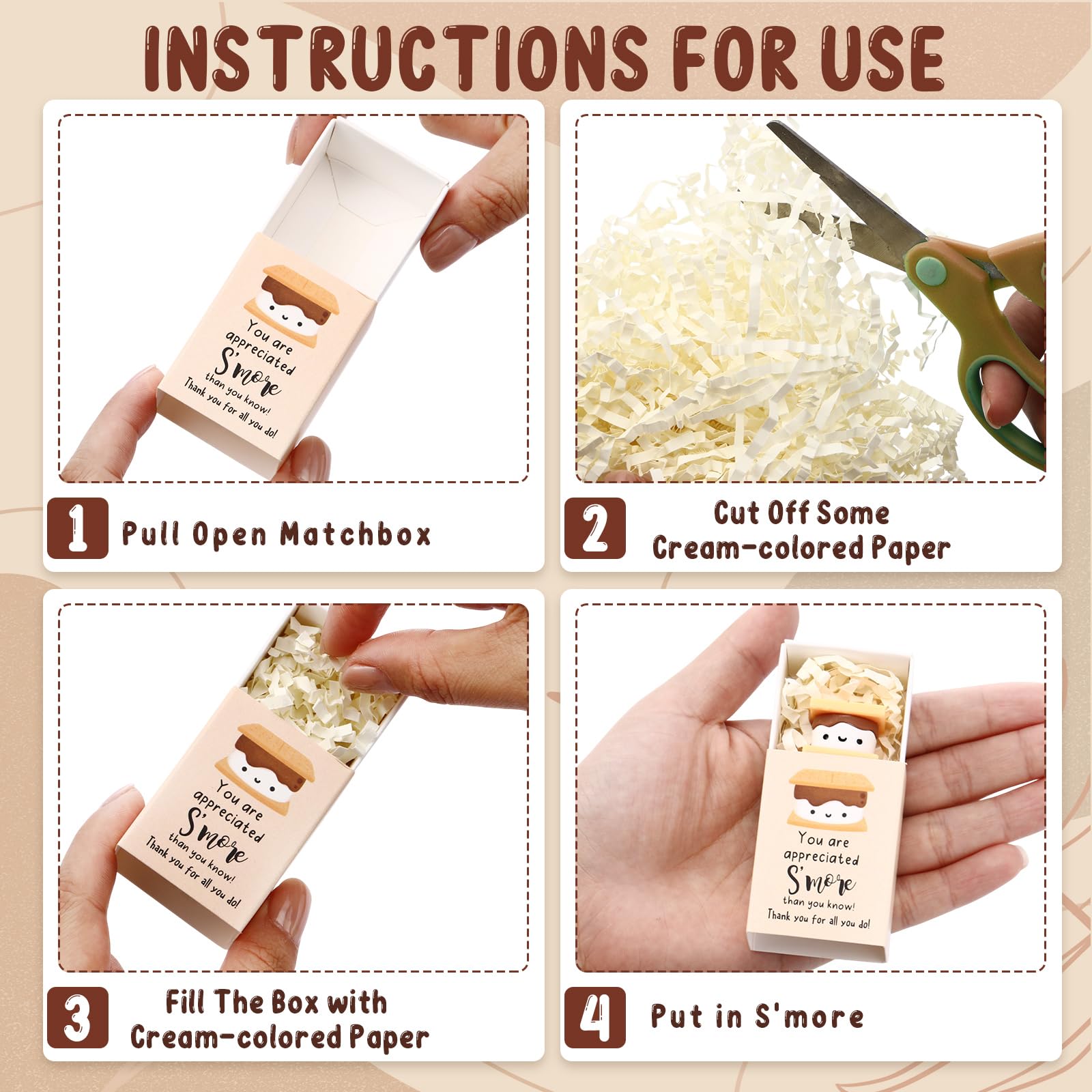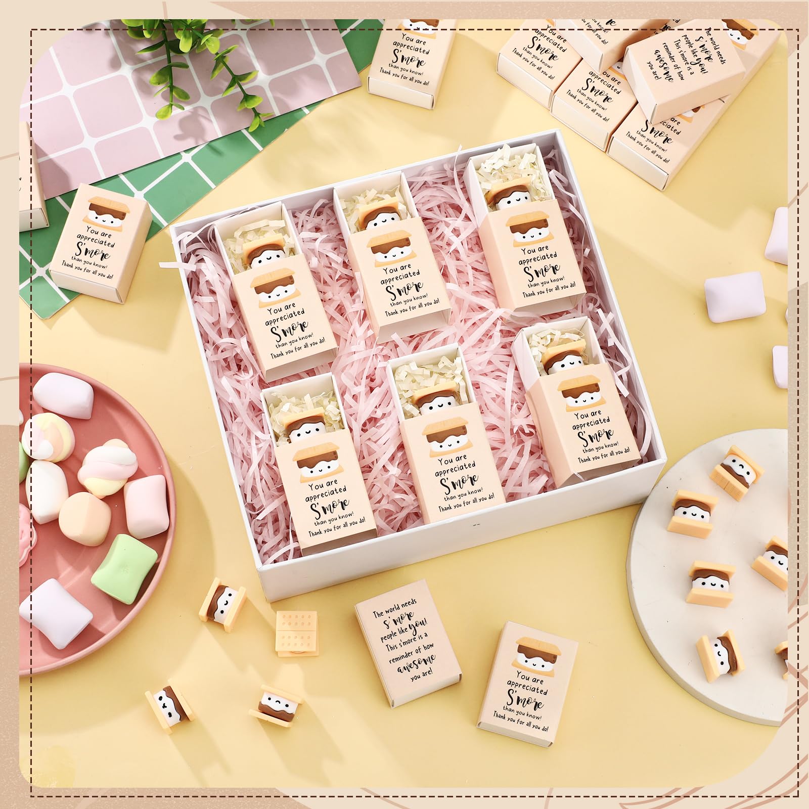 - Thank You Smore Gifts: each package includes 24 resin positive marshmallow sandwich ornaments and 24 thank you gift boxes; We also provide a pack of Raffia; Applied them as office thank you gifts for your employees to make them feel valued and appreciated