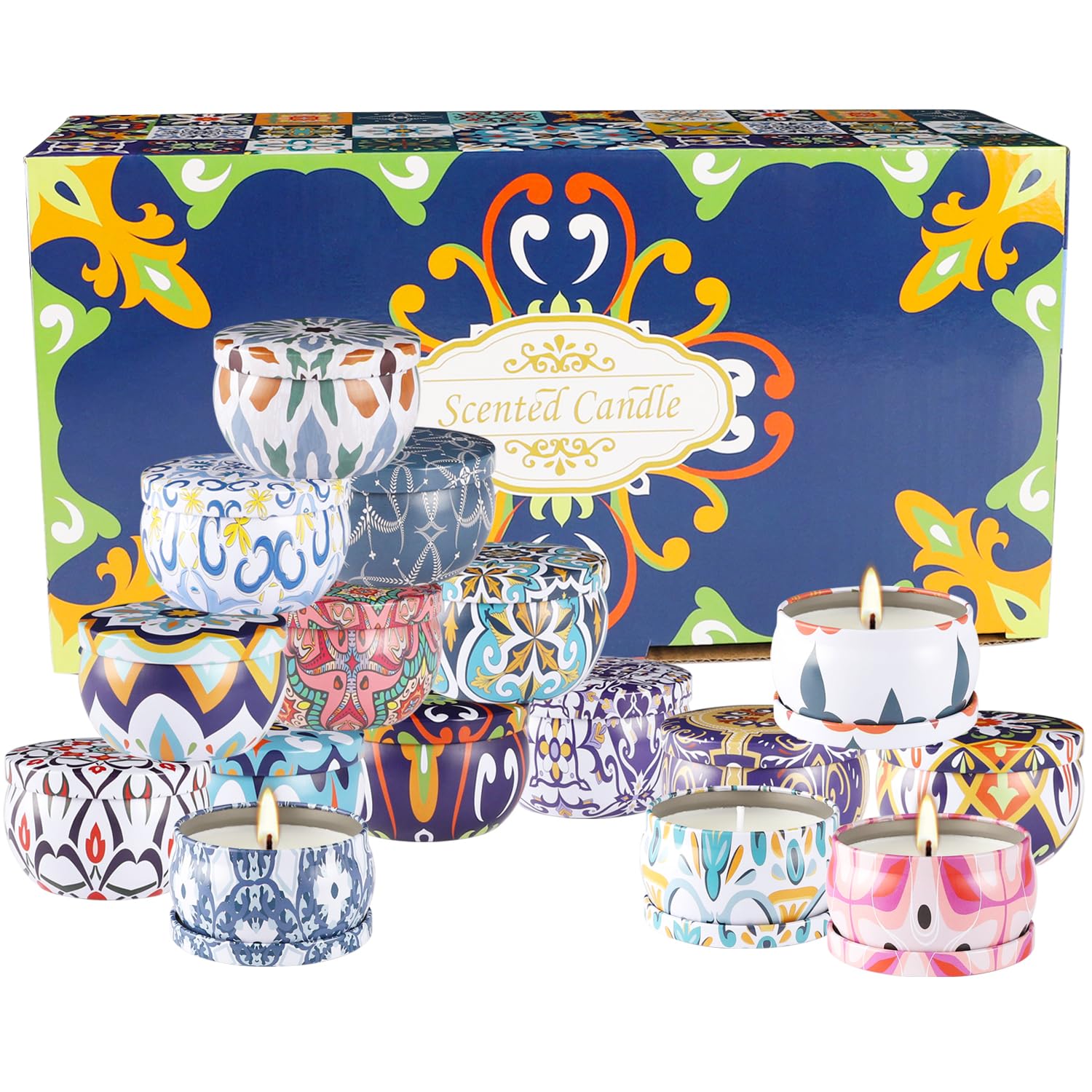 - Scented Candles: This scented candle gift set offers 16 delicately clean and uplifting aromas, including Blue Bell, Peony Cherry Blossom, Guava, Lavender, Bonfires, Jasmine, Lemon, Vanilla, Gardenia, French Blackberry, Strawberry, Spring, Cinnamon, Chamomile, Fig, Peppermint.