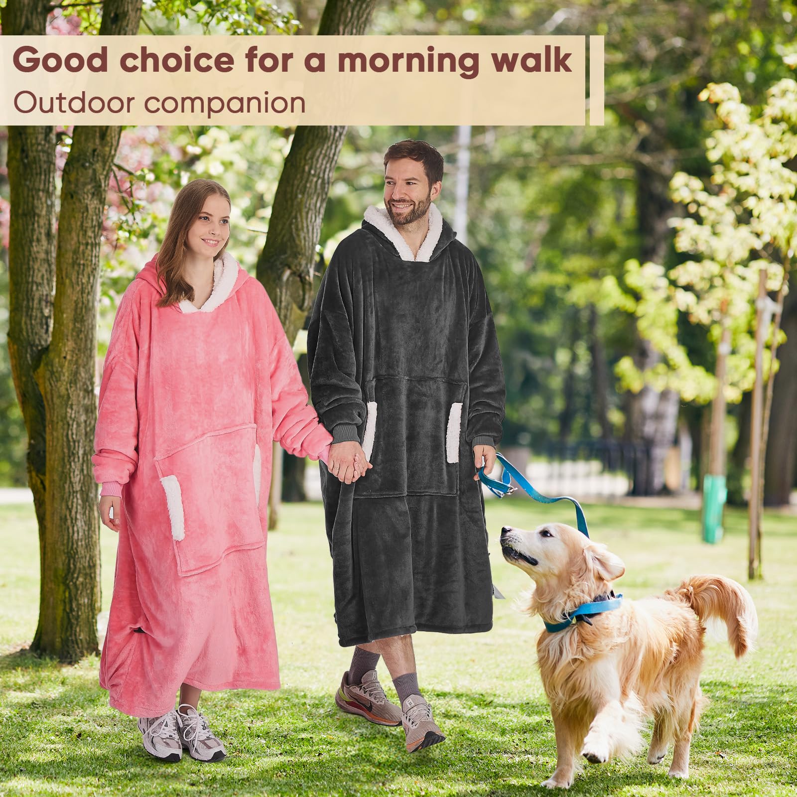 yescool Wearable Blanket Hoodie - Birthday Christmas Gifts for Women Mom Girlfriend, Oversized Flannel Sherpa Cozy Hooded Blanket Sweatshirt Adult With Hood Pocket & Sleeves, One Size Fits All (Grey)