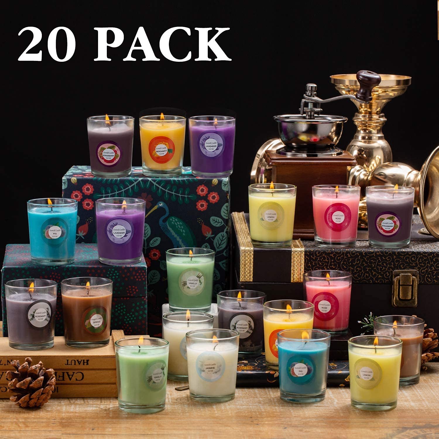 YOROXRG Scented Candles, Jasmine, Rose, Vanilla, Bergamot, fig, Lavender, Lemon, Spring,Strawberry, Rosemary, Aromatherapy Candles,Soy Wax Glass Jar Candle - 20 Pack