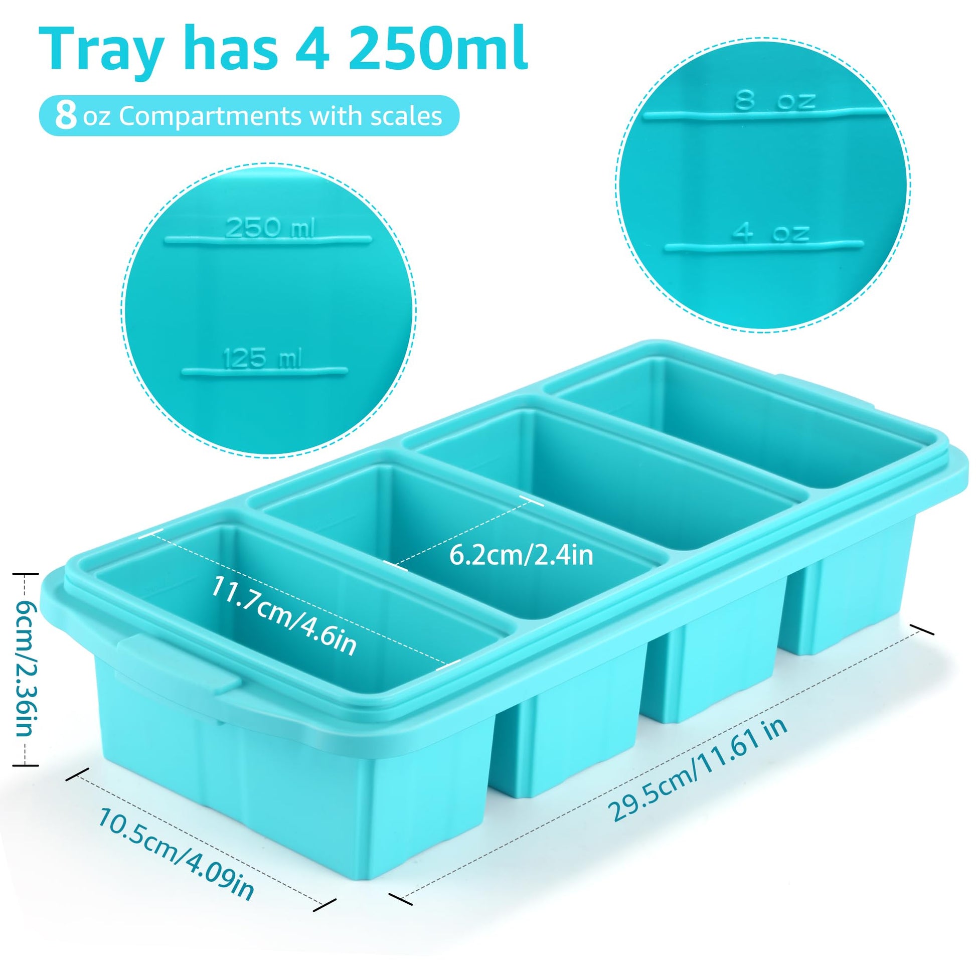- PERFECT SERVING SIZE,EASY TO STACK: The soup silicone freezer tray has 2 fill lines: 125ml/4oz and 250ml/8oz in each individual separate compartment, making portioning broth, soup, sauce, and other measured liquid meals easier and more convenient