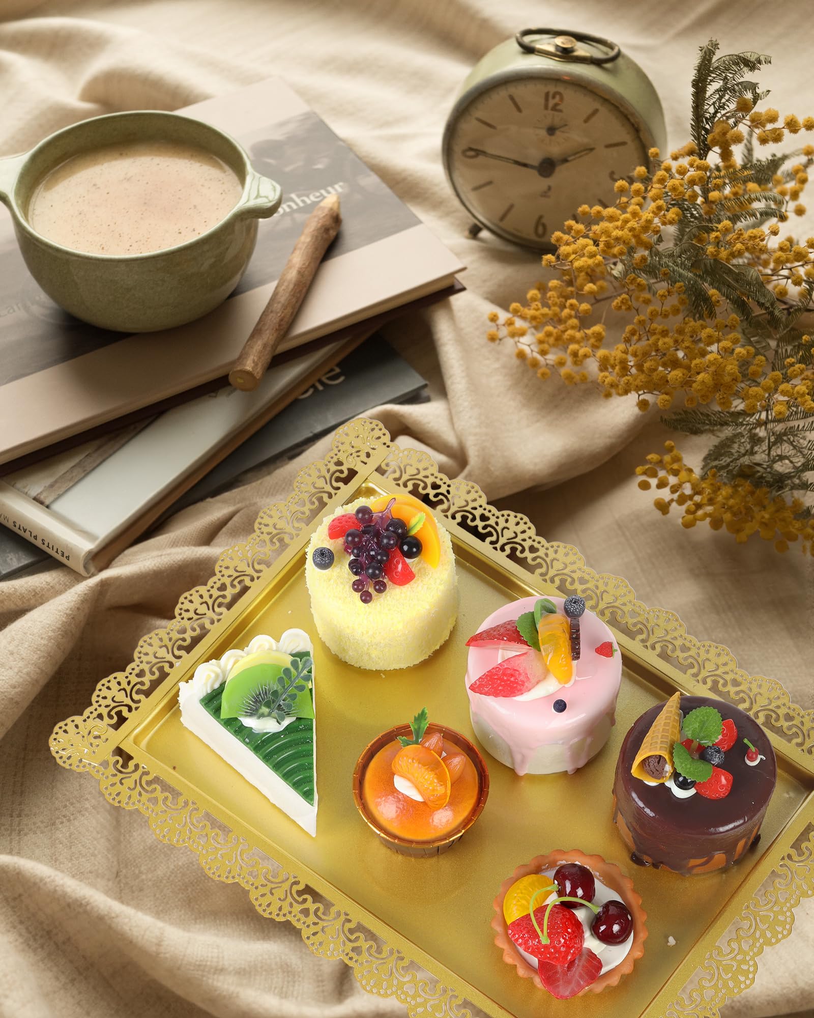 - PACKAGE SET--1 x 3-Tier Cake Stand, 1 x Cake Stand Medium with Base, 1 x 2-Tier Cake Stand, 1 x Cupcake stand with handle, 1 x Rectangular Cake Pan